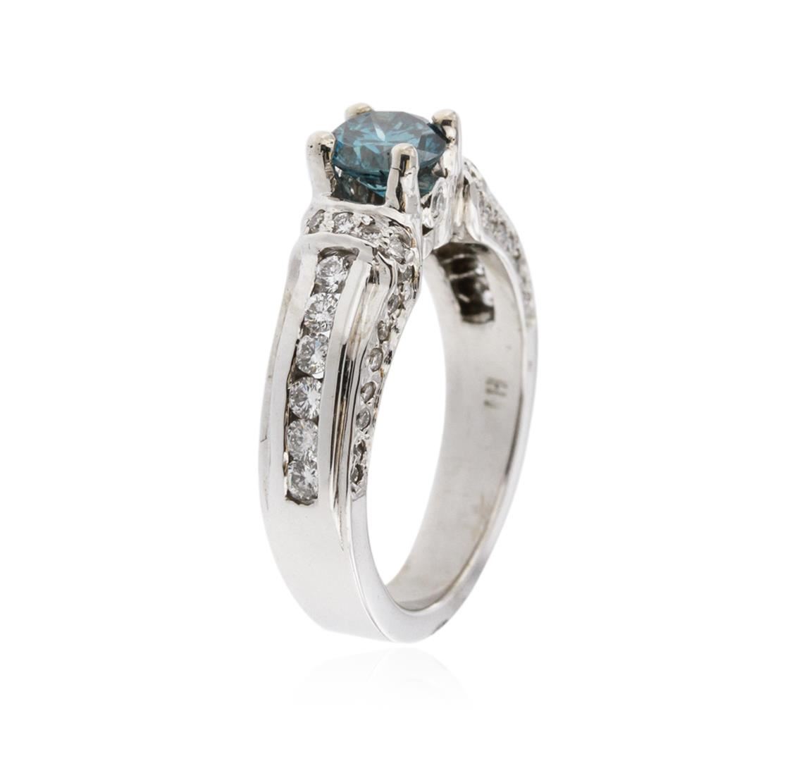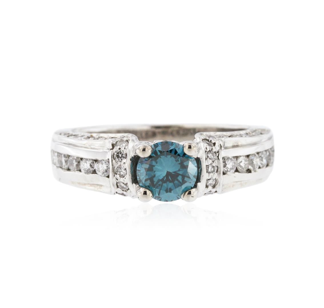 One ring featuring: 14KT white gold weighing 6.50 grams containing one blue diamond center with a total weight of 0.71ct and white diamond side stones with a total weight of 1.00ct.