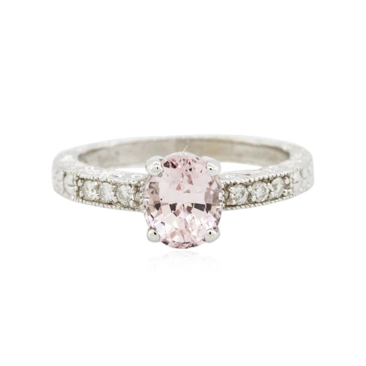 One ring featuring: 14KT white gold weighing 2.98 grams containing one padparadscha center stone with a total weight of 1.73ct and diamonds with a total weight of xct.