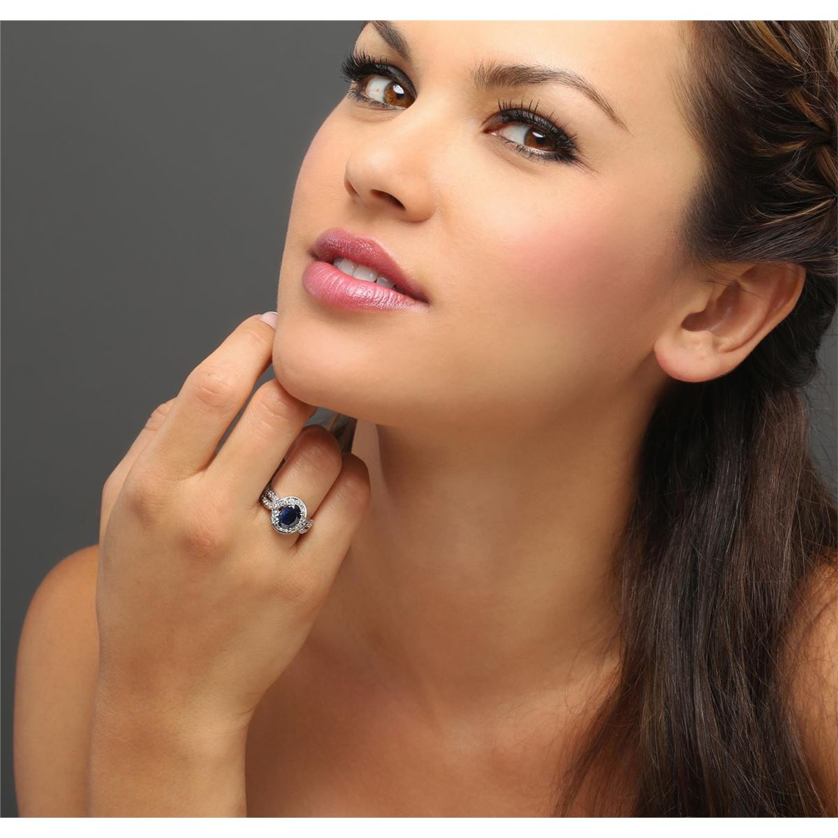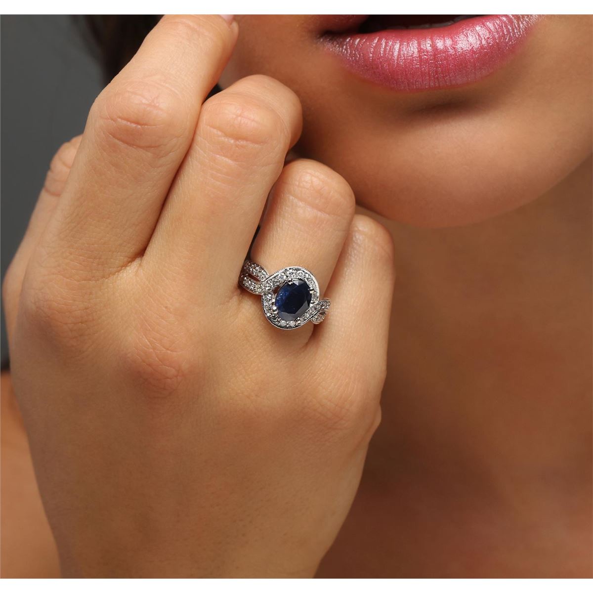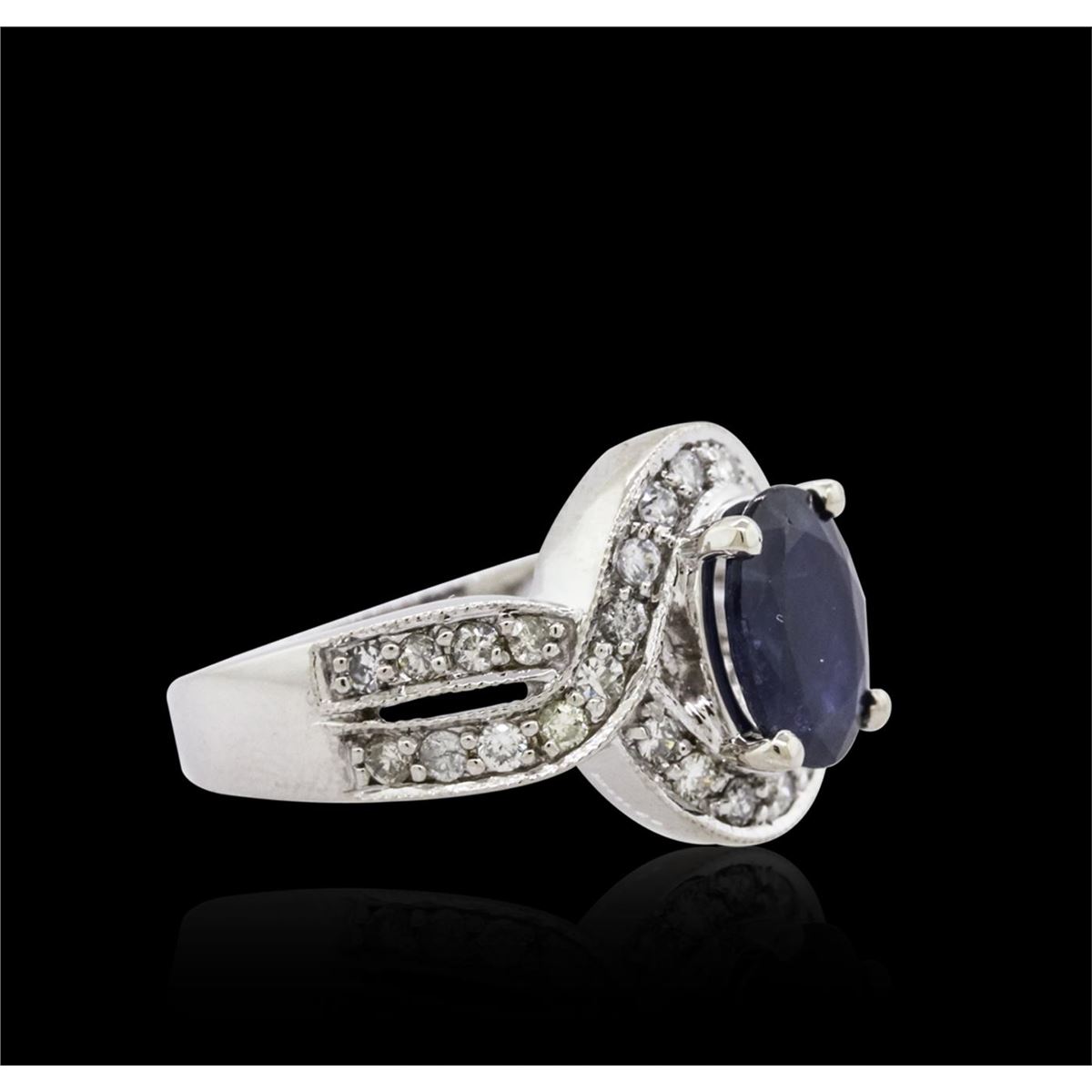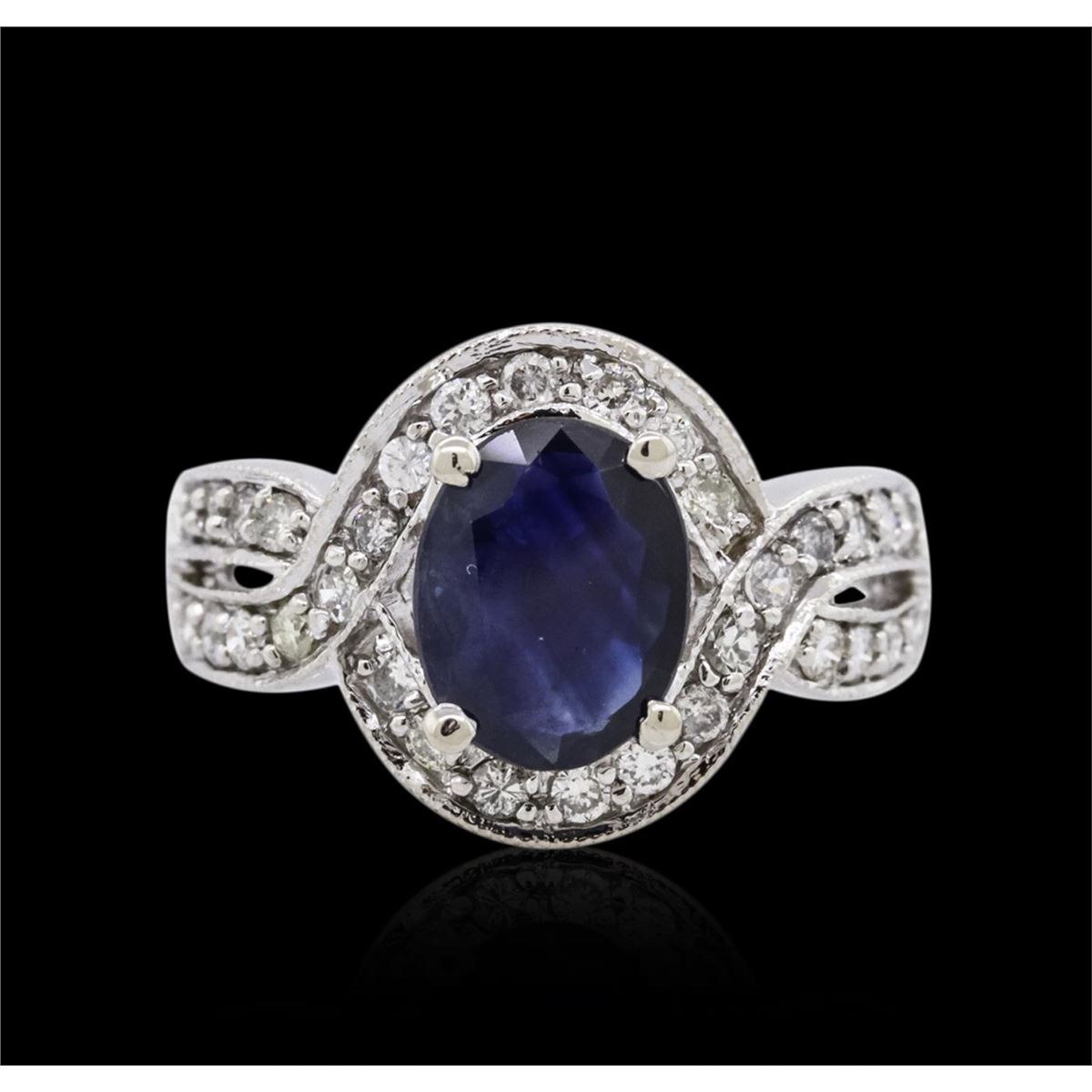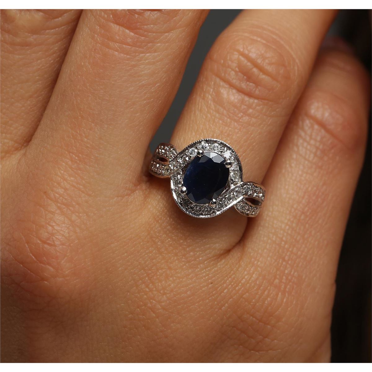 One ring featuring: 14KT white gold weighing 6.60 grams containing one prong set oval cut sapphire with a total weight of 1.73ct and pave set round cut diamonds with a total weight of 0.59cts.