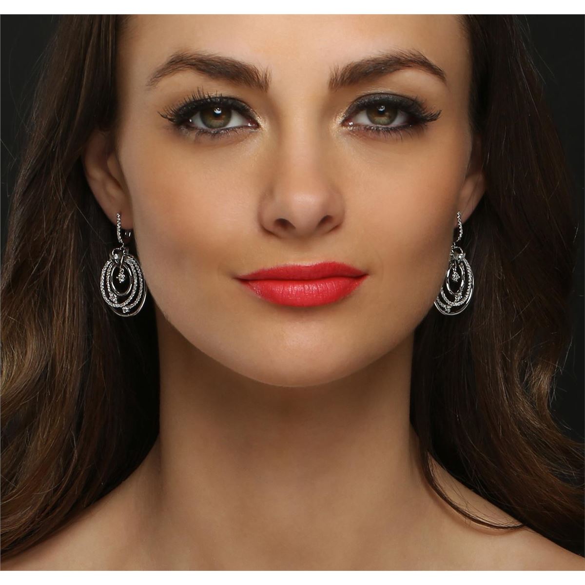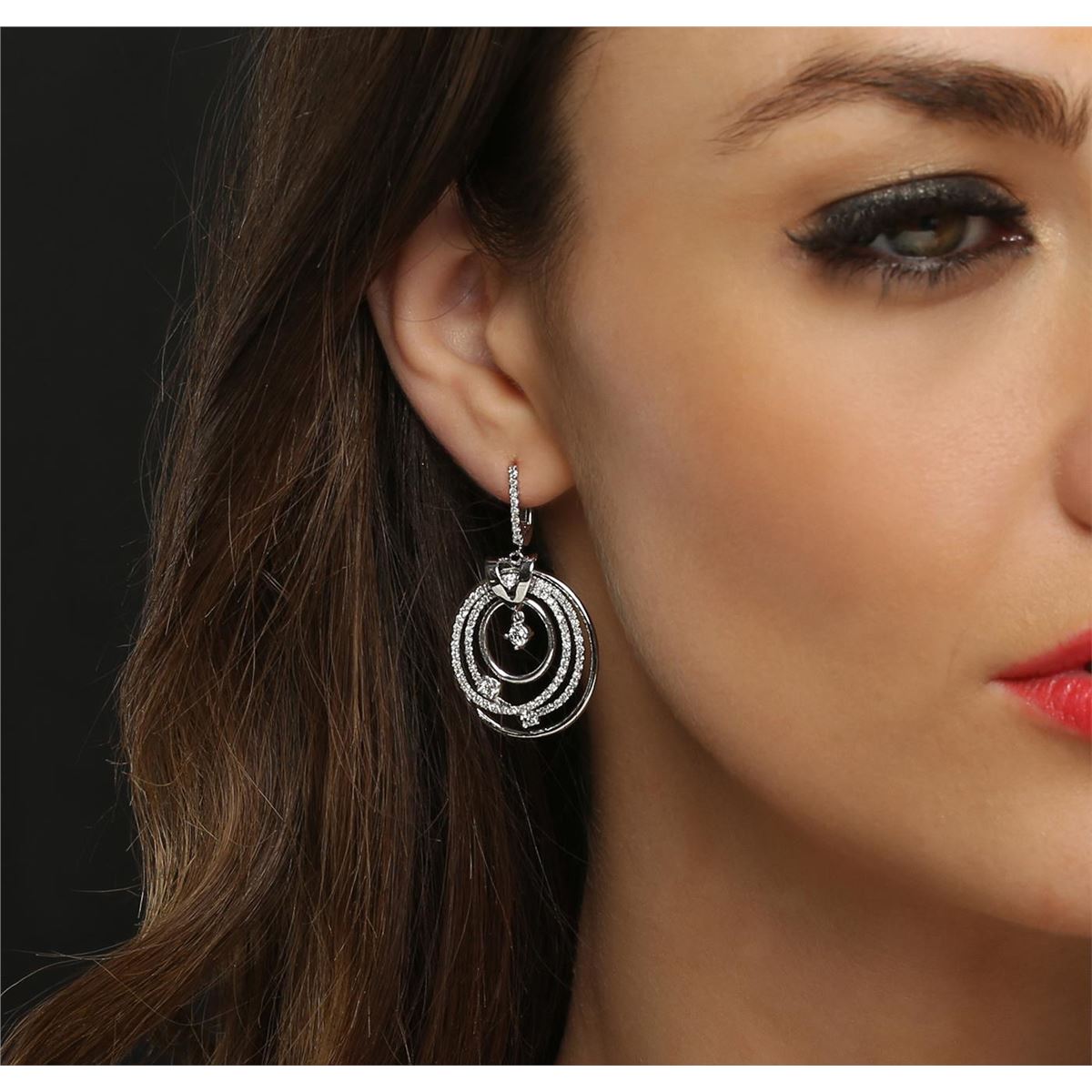 One pair electronically tested 14KT white gold ladies combination cast & assembled dangle earrings with hinged clip backs with a bright polish finish. Identified with markings of "14K". Condition is new. Containing: Six prong set round brilliant cut diamonds, measuring 3.00 - 2.50 x 1.65mm (depth est.) approximate total weight of 6 Stones = 0.46ct. Clarity: SI-1 to SI-2. Color: H - I, Cut is Good. One Hundred Sixty prong set round brilliant cut diamonds, measuring 1.30 - 1.30 x 0.78mm (depth est.) approximate total weight of 160 Stones = 1.28ct. Clarity: SI-2 to I-2. Color: H - I, Cut is Good. All diamonds are graded in the mounting, unless otherwise stated. Total Weight of Diamonds 1.74ct. Total Weight of Earrings 11.10 grams. GGL Appraised at $8,820.00.