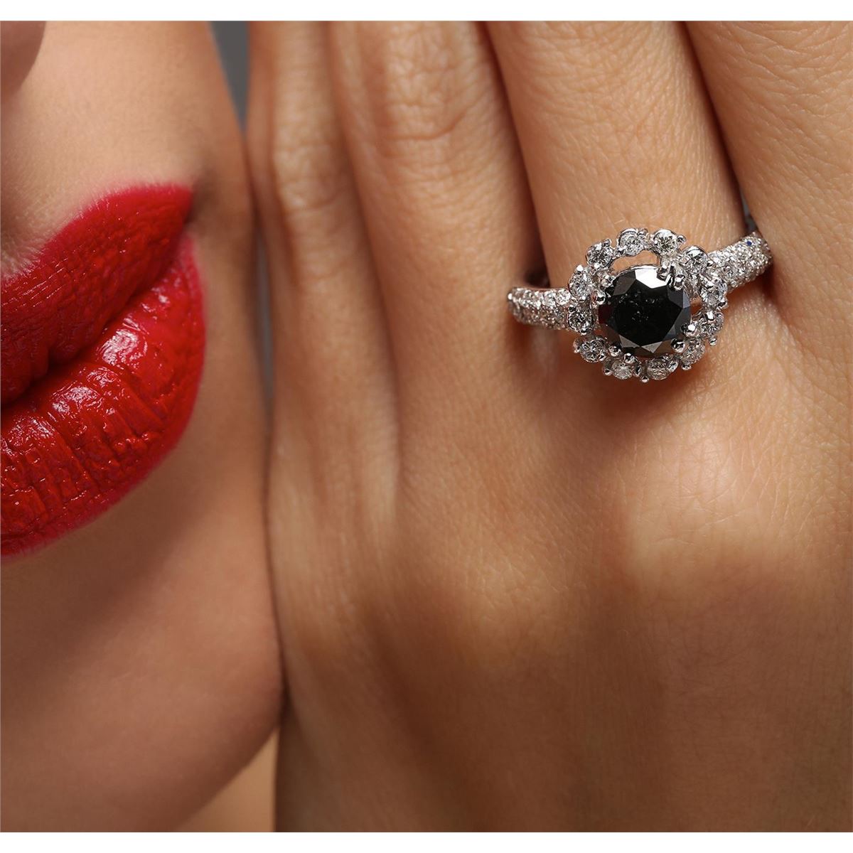 One electronically tested 14KT white gold ladies cast diamond engagement ring with a bright polish finish. Identified with markings of "14K". Condition is new. Containing: One prong set round brilliant cut diamond, measuring 6.94 - 6.88 x 4.14mm (depth est.) approximate weight of 1.21ct. Cut is Good. Fifty-Four prong set round brilliant cut diamonds, measuring 1.50 - 1.30 x 0.84mm (depth est.) approximate total weight of 54 Stones = 0.54ct. Clarity: SI-2 to I-2. Color: H - I, Cut is Good. All diamonds are graded in the mounting, unless otherwise stated. Total Weight of Diamonds 1.75ct. Total Weight of Ring 4.50 grams. GGL Appraised at $4,430.00.