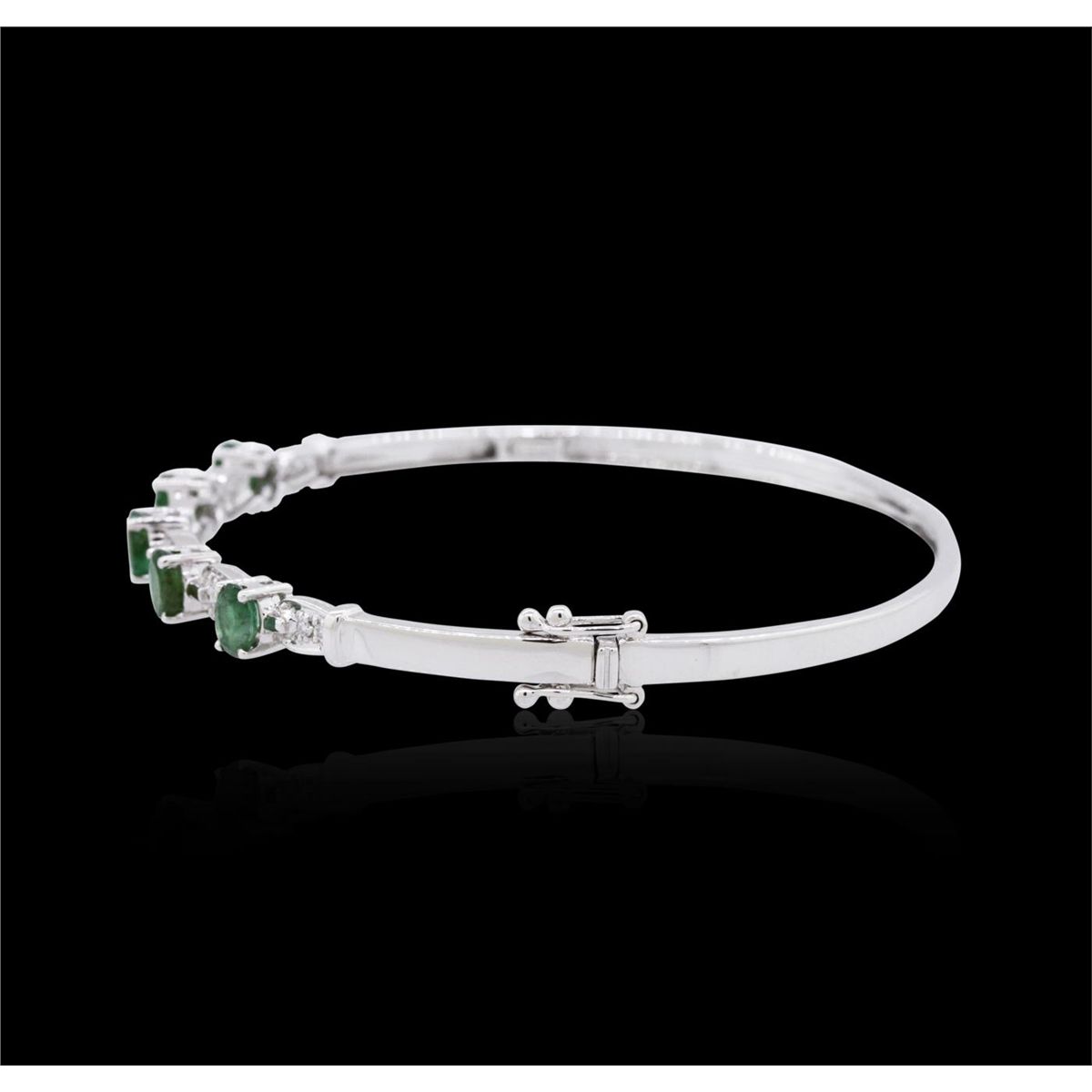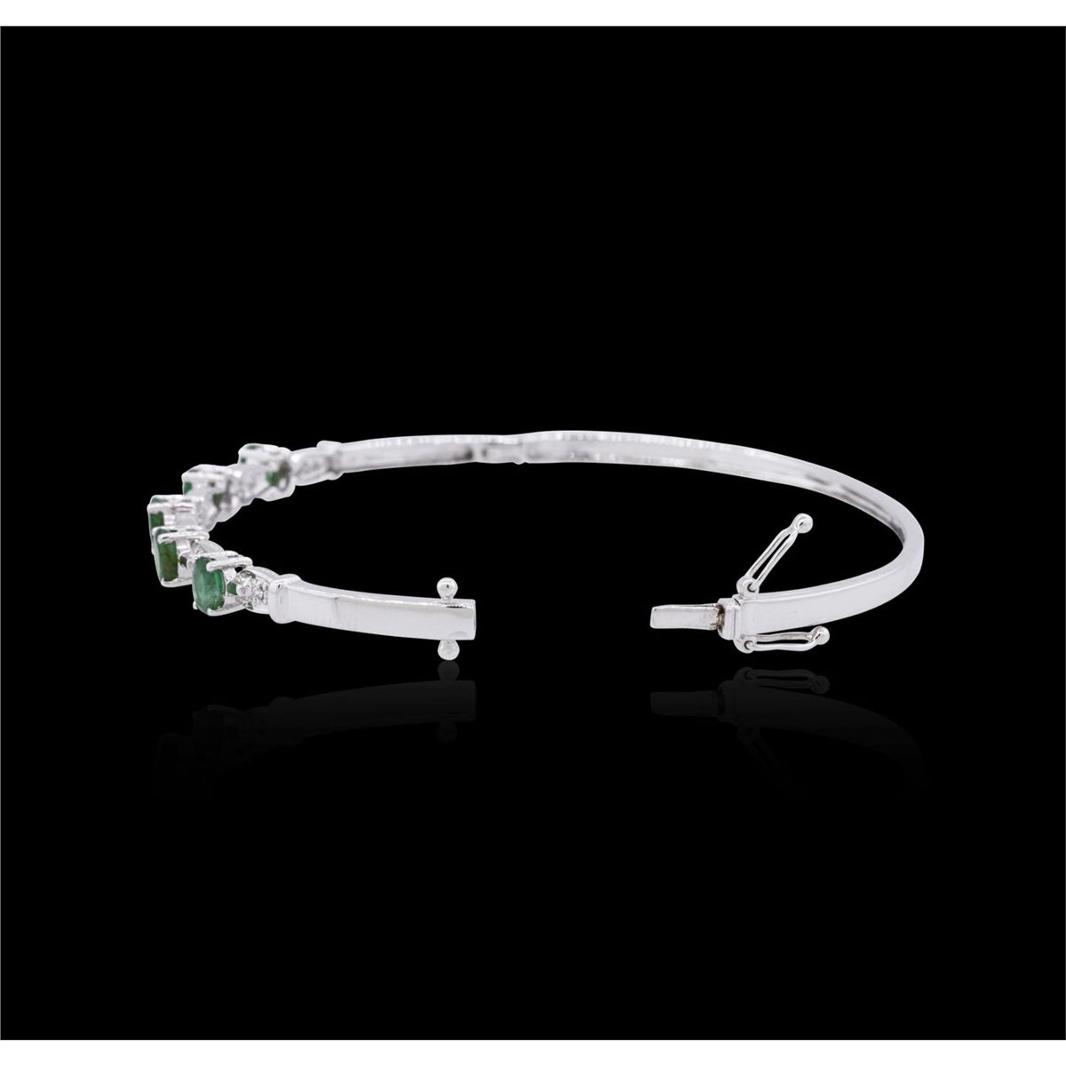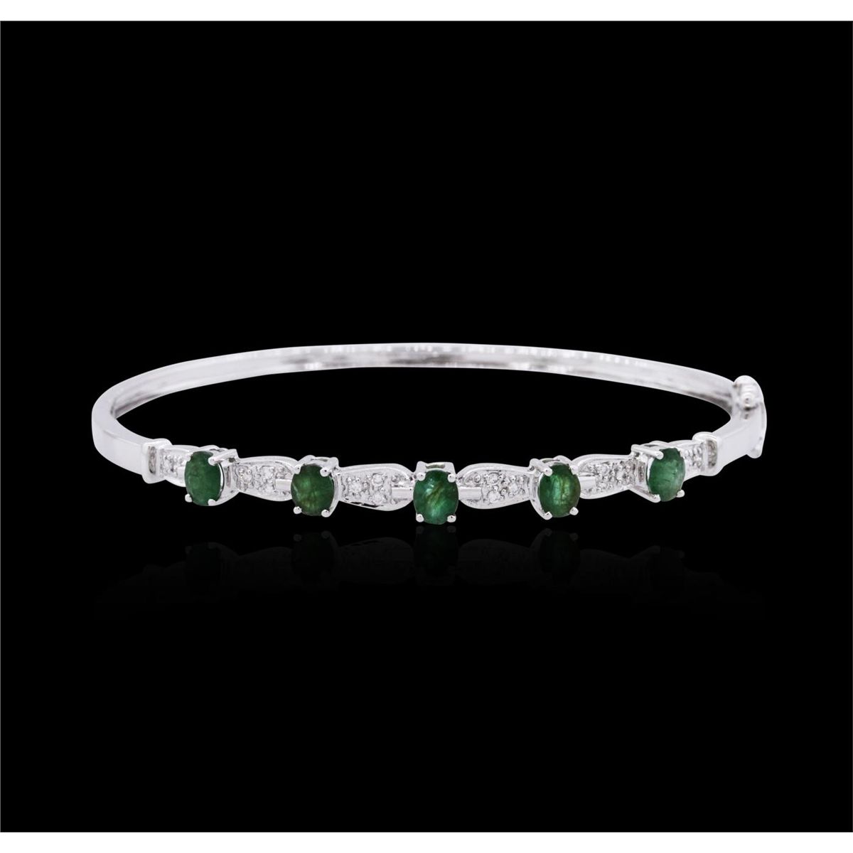 One bangle bracelet featuring: 14KT white gold weighing 7.40 grams containing five emeralds with a total weight of 1.75cts and 16 round cut diamonds with a total weight of 0.16cts.