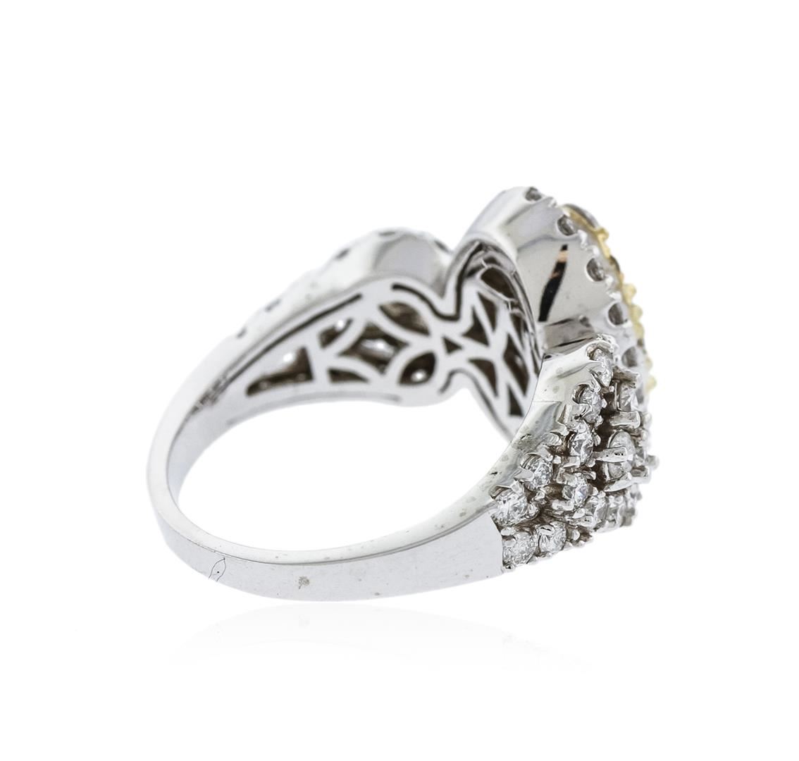One electronically tested 14KT white gold ladies cast diamond ring with a bright polish finish. Identified with markings of "14K". Condition is new. Containing: Six prong set round brilliant cut diamonds, measuring 3.20 - 3.20 x 1.92mm (depth est.) approximate total weight of 6 Stones = 0.72ct. Clarity: I-1 to I-2. Color: J - K, Cut is Good. Fifty-Three prong set round brilliant cut diamonds, measuring 2.30 - 1.20 x 1.05mm (depth est.) approximate total weight of 53 Stones = 1.04ct. Clarity: SI-1 to I-1. Color: I - J, Cut is Good. All diamonds are graded in the mounting, unless otherwise stated. Total Weight of Diamonds 1.76ct. Total Weight of Ring 6.30 grams. GGL Appraised at $4,910.00.
