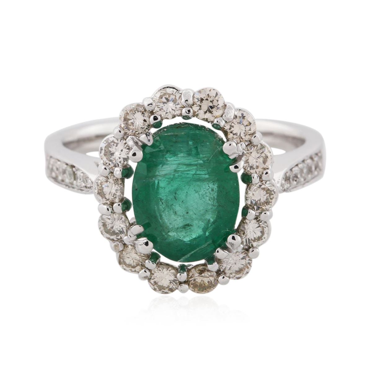 One electronically tested 14KT white gold Ladies combination cast & assembled fashion ring with a high polish finish. Condition is new. Identified with markings of "14K". Containing: One prong set oval modified mixed cut natural emerald, measuring 9.30 x 7.30 x 4.70mm, approximate weight of 1.76ct., clarity is heavily included, type III, medium, moderately strong, very slightly bluish green color, (GIA vslbG 5/4), cut is good. Colored gemstones are presumed to have been subjected to commonly used and possible undetectable color/clarity enhancement processes. Twenty-Six prong set round brilliant cut diamonds, measuring 1.90 - 1.30 x 0.96mm (depth est.) approximate total weight of 26 Stones = 0.50ct. Clarity of SI-1 to I-1, Color of I - K, Cut is Good. Total Weight of Colored Stones 1.76ct. Total Weight of Diamonds 0.50ct. Total Weight of Ring 5.20 grams. GGL Appraised at $6,210.00.