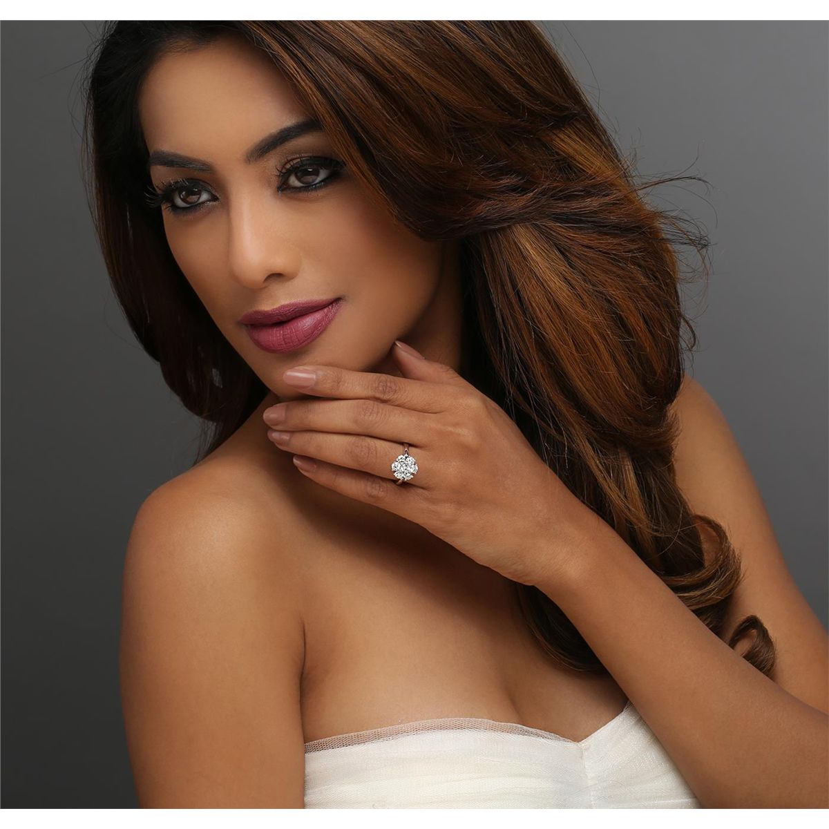 One electronically tested 14KT white gold ladies combination cast & assembled diamond ring with a flat shank with a bright polish finish. Identified with markings of "K14". Condition is new. Containing: Seven prong set round brilliant cut diamonds, measuring 4.20 - 4.00 x 2.46mm (depth est.) approximate total weight of 7 Stones = 1.77ct. Clarity: SI-1 to I-1. Color: I - J, Cut is Good. All diamonds are graded in the mounting, unless otherwise stated. Total Weight of Diamonds 1.77ct. Total Weight of Ring 4.60 grams. GGL Appraised at $7,450.00.
