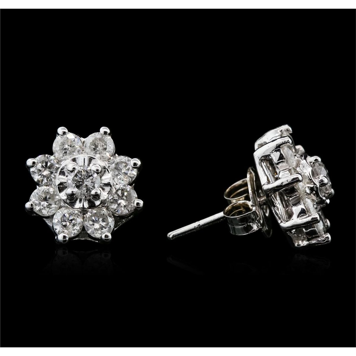 One pair electronically tested 14KT white gold ladies combination cast & assembled diamond earrings with friction posts with a bright polish finish. Condition is new. Containing: Eighteen prong set round brilliant cut diamonds, measuring 3.00 - 3.00 x 1.80mm (depth est.) approximate total weight of 18 Stones = 1.78ct. Clarity: I-2 to I-3. Color: I - J, Cut is Good. All diamonds are graded in the mounting, unless otherwise stated. Total Weight of Diamonds 1.78ct. Total Weight of Earrings 4.80 grams. GGL Appraised at $4,745.00.