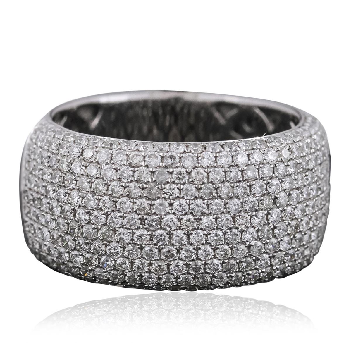 One electronically tested 14KT white gold ladies combination cast & assembled ring with a bright polish finish. Identified with markings of "14K". Condition is new. Containing: Two Hundred Eighty-Eight prong set round brilliant cut diamonds, measuring 1.20 - 1.20 x 0.72mm (depth est.) approximate total weight of 288 Stones = 1.81ct. Clarity: SI-2 to I-1. Color: H - I, Cut is Good. All diamonds are graded in the mounting, unless otherwise stated. Total Weight of Diamonds 1.81ct. Total Weight of Ring 8.90 grams. GGL Appraised at $10,140.00.