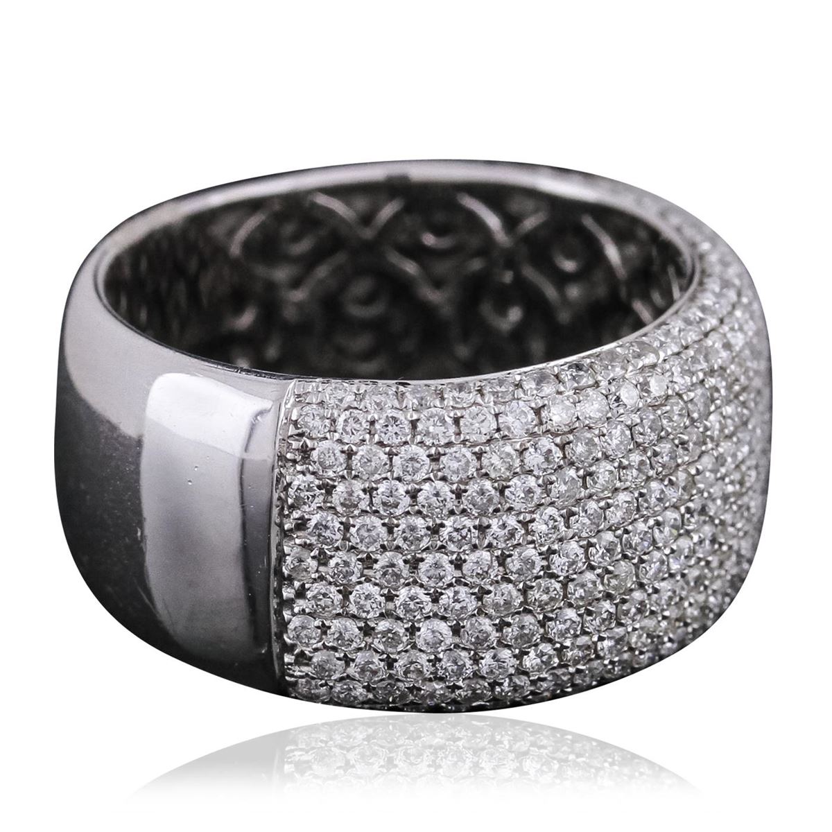 One electronically tested 14KT white gold ladies combination cast & assembled ring with a bright polish finish. Identified with markings of "14K". Condition is new. Containing: Two Hundred Eighty-Eight prong set round brilliant cut diamonds, measuring 1.20 - 1.20 x 0.72mm (depth est.) approximate total weight of 288 Stones = 1.81ct. Clarity: SI-2 to I-1. Color: H - I, Cut is Good. All diamonds are graded in the mounting, unless otherwise stated. Total Weight of Diamonds 1.81ct. Total Weight of Ring 8.90 grams. GGL Appraised at $10,140.00.