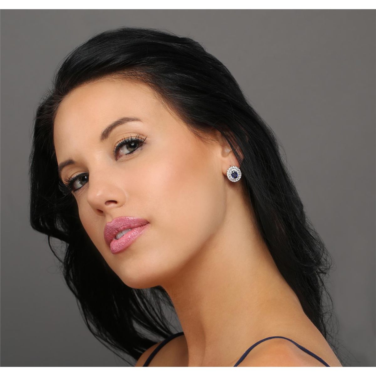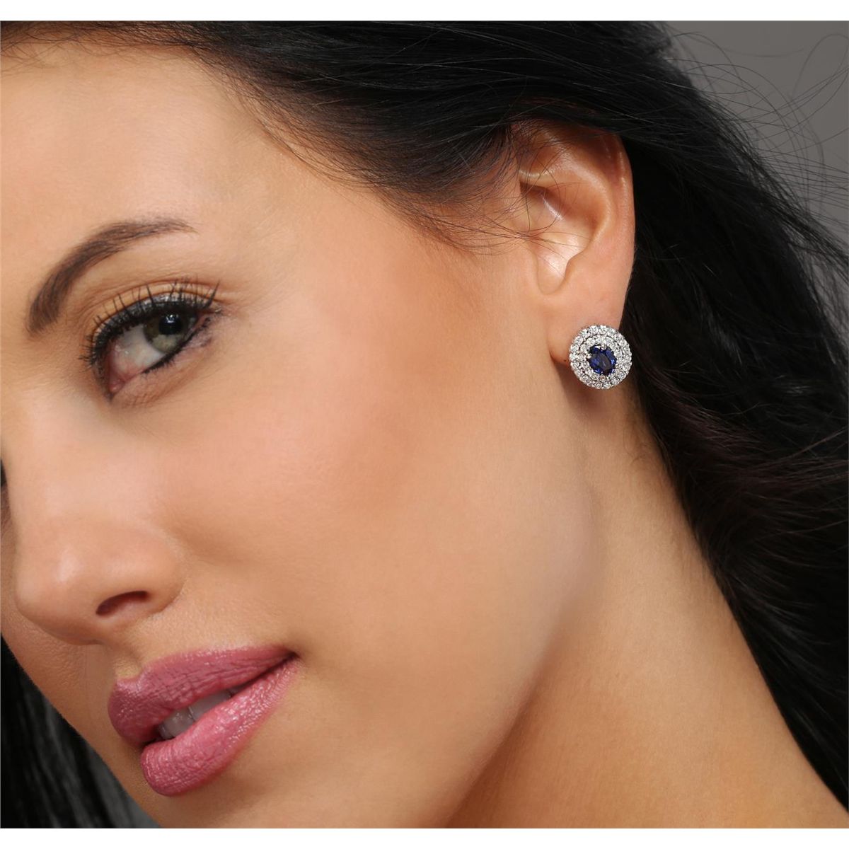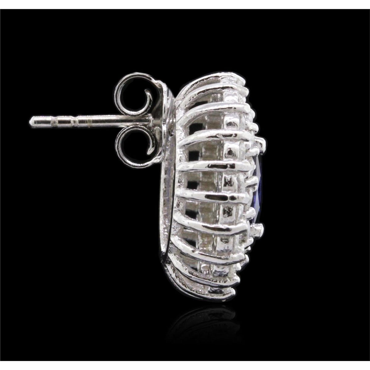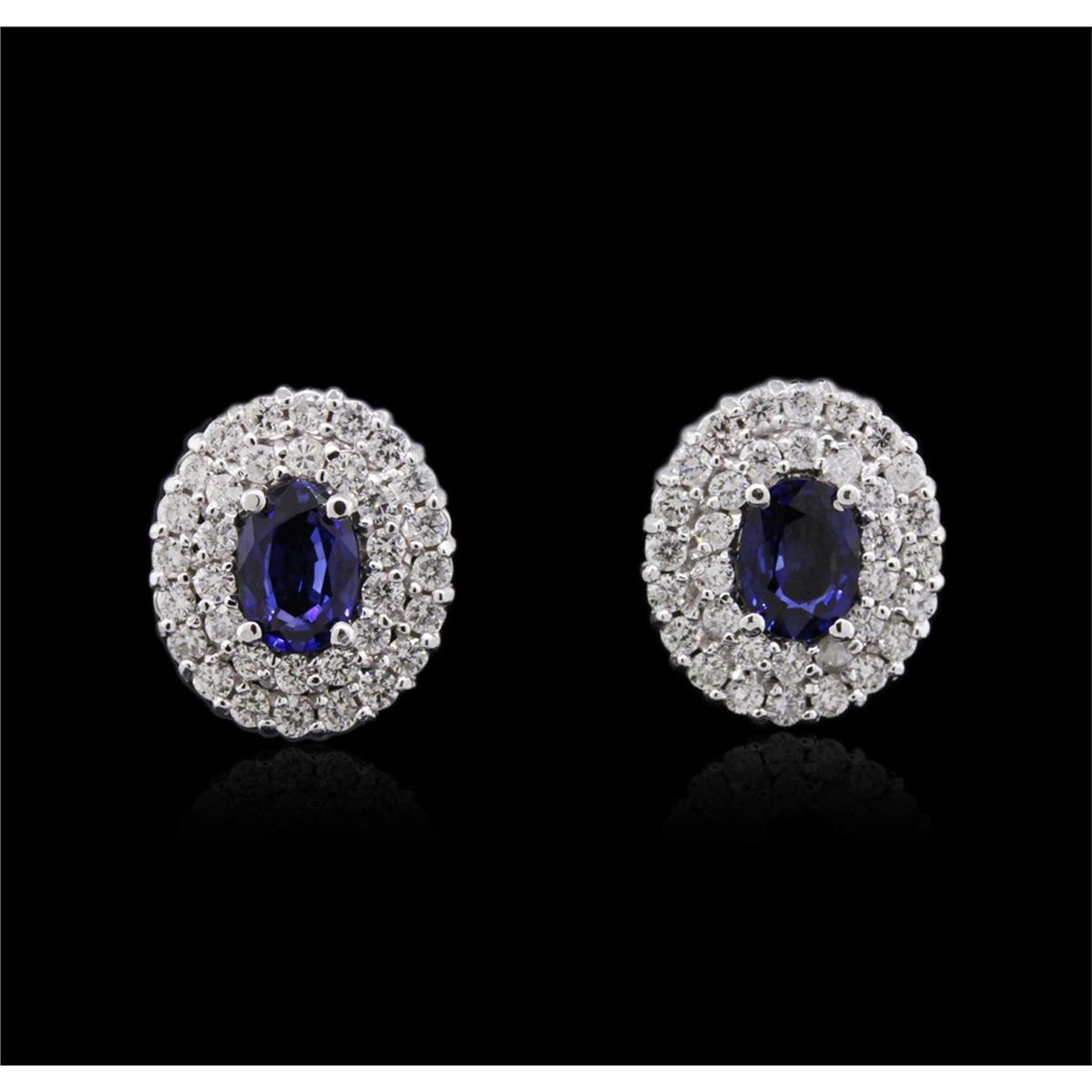 One pair electronically tested 14KT white gold ladies combination cast & assembled sapphire and diamond earrings with friction posts with a bright polish finish. Identified with markings of "14K". Condition is new. Containing: Two prong set oval modified brilliant cut natural blue sapphires, measuring 7.00 x 4.90 x 3.19mm, approximate total weight of 1.84ct., clarity is eye clean, type II, medium, moderately strong, blue color, (GIA B 5/4), cut is good. Sixty-Eight prong set round brilliant cut diamonds, measuring 1.50 - 1.50 x 0.90mm (depth est.) approximate total weight of 68 Stones = 0.84ct. Clarity: I-1. Color: K - L, Cut is Good. Colored gemstones are presumed to have been subjected to commonly used enhancement processes. All diamonds and colored gemstones are graded in the mounting, unless otherwise stated. Total Weight of Colored Stones 1.84ct. Total Weight of Diamonds 0.84ct. Total Weight of Earrings 4.90 grams. GGL Appraised at $3,985.00.