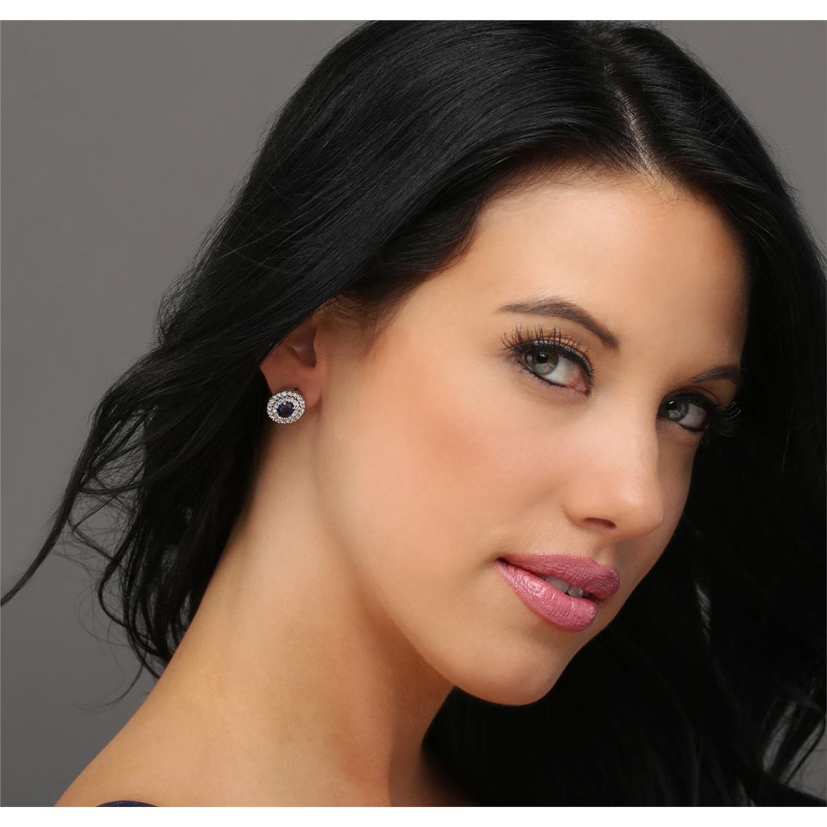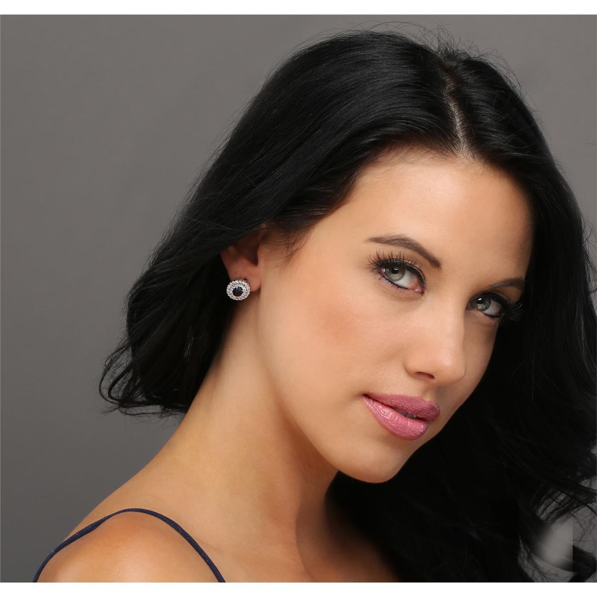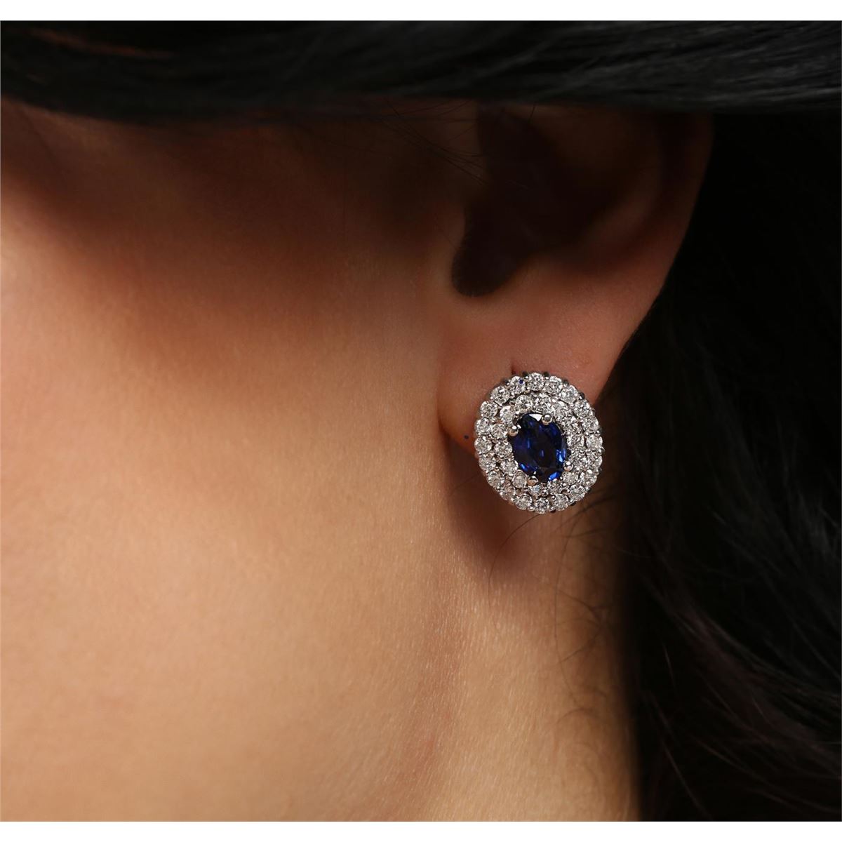 One pair electronically tested 14KT white gold ladies combination cast & assembled sapphire and diamond earrings with friction posts with a bright polish finish. Identified with markings of "14K". Condition is new. Containing: Two prong set oval modified brilliant cut natural blue sapphires, measuring 7.00 x 4.90 x 3.19mm, approximate total weight of 1.84ct., clarity is eye clean, type II, medium, moderately strong, blue color, (GIA B 5/4), cut is good. Sixty-Eight prong set round brilliant cut diamonds, measuring 1.50 - 1.50 x 0.90mm (depth est.) approximate total weight of 68 Stones = 0.84ct. Clarity: I-1. Color: K - L, Cut is Good. Colored gemstones are presumed to have been subjected to commonly used enhancement processes. All diamonds and colored gemstones are graded in the mounting, unless otherwise stated. Total Weight of Colored Stones 1.84ct. Total Weight of Diamonds 0.84ct. Total Weight of Earrings 4.90 grams. GGL Appraised at $3,985.00.