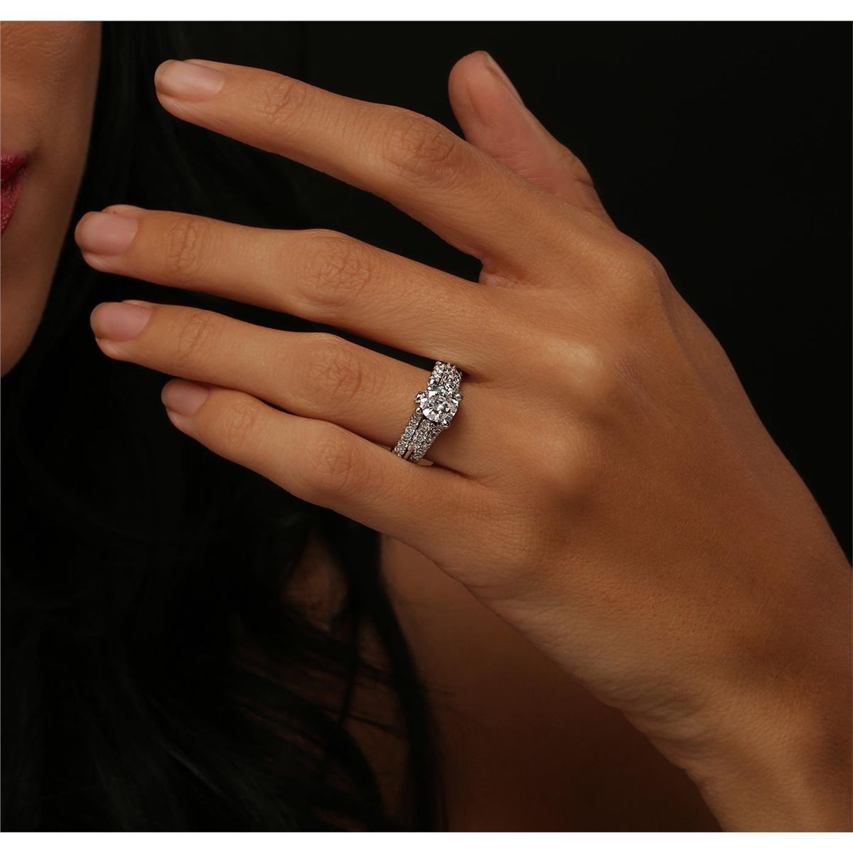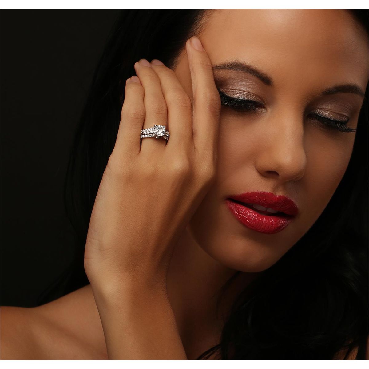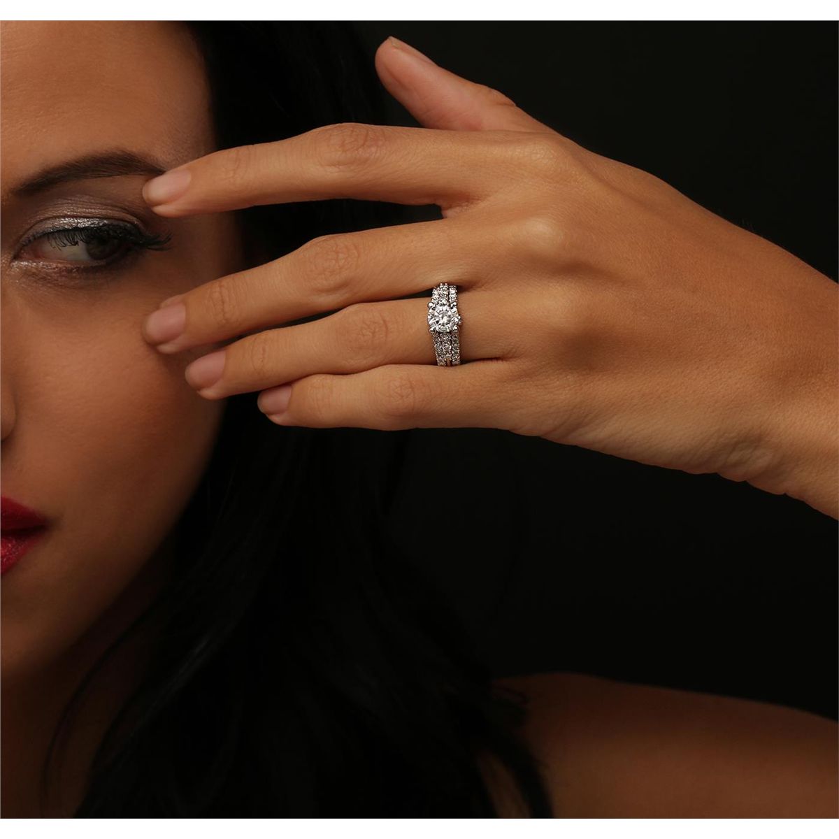 One electronically tested 14KT white gold Ladies combination cast & assembled engagement ring with a bright polish finish. Condition is new. Identified with markings of "14K". Containing: One prong set round brilliant cut diamond, measuring 6.72 - 6.71 x 3.81mm (depth est.) approximate. Total Weight of 1.04ct. Clarity: I-3. Color: F, Cut is Good. Forty-Four prong set round brilliant cut diamonds, measuring 1.90 - 1.50 x 1.02mm (depth est.) approximate. Total Weight of 44 Stones = 0.83ct. Clarity: VS-2 to SI-2. Color: F - G, Cut is Good. EGL USA GEM ID# US 911348427D. All diamonds are graded in the mounting, unless otherwise stated. Total Weight of Diamonds 1.87ct. Total Weight of Engagement Ring 5.50 grams. GGL Appraised at $10,025.00.