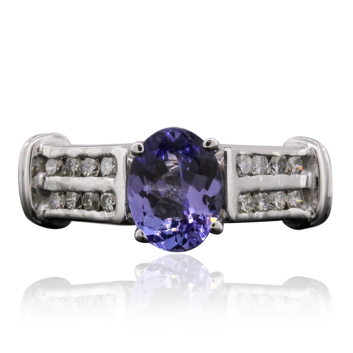 One ring featuring: 14KT White Gold with a total weight of 7.00 grams, Tanzanite with a total weight of 1.90ct, and Diamonds with a total weight of 0.50ctw.