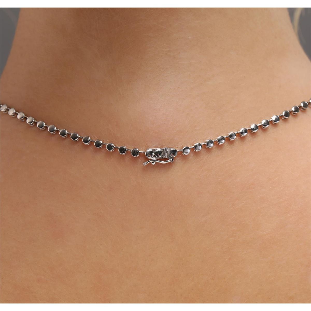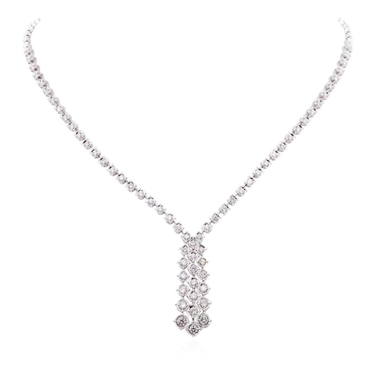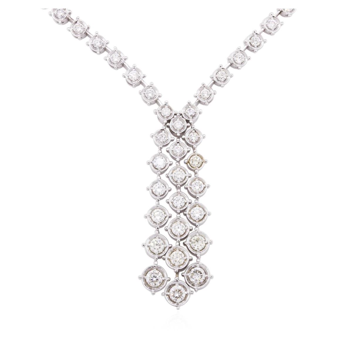 One electronically tested 14KT white gold ladies combination cast & assembled diamond necklace with a hidden box clasp with safety closer with a bright polish finish. Identified with markings of "14K". Condition is new. Containing: Sixty-Five prong set round brilliant cut diamonds, measuring 2.00 - 2.00 x 1.20mm (depth est.) approximate total weight of 65 Stones = 1.90ct. Clarity: SI-1 to SI-2. Color: I - J, Cut is Good. All diamonds are graded in the mounting, unless otherwise stated. Total Weight of Diamonds 1.90ct. Total Weight of Necklace 24.10 grams. GGL Appraised at $11,360.00.