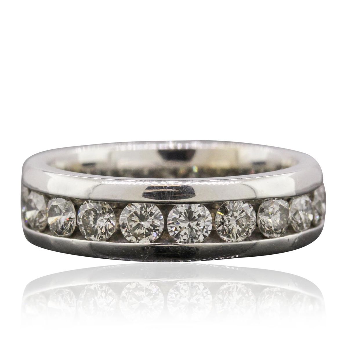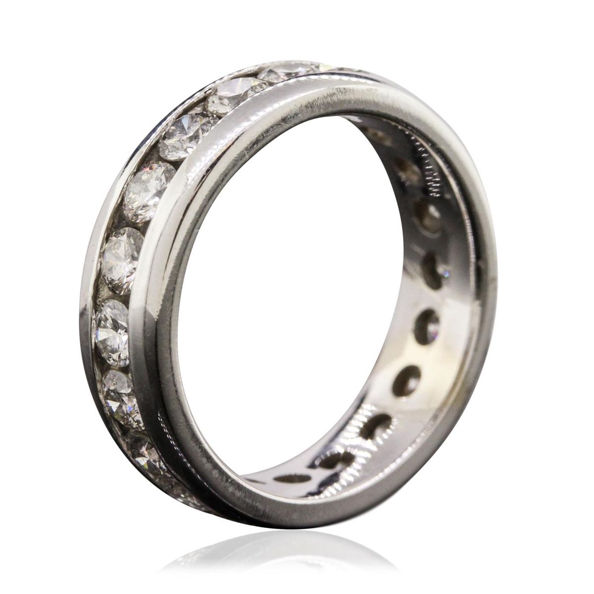 One electronically tested 14KT white gold Ladies combination cast & assembled wedding band with a bright polish finish. Condition is new. Identified with markings of "14K". Containing: Twenty channel set round brilliant cut diamonds, measuring 3.00 - 3.00 x 1.80mm (depth est.) approximate. Total Weight of 20 Stones = 1.98ct. Clarity: SI-2 to I-2. Color: H - I, Cut is Very Good. All diamonds are graded in the mounting, unless otherwise stated. Total Weight of Diamonds 1.98ct. Total Weight of Wedding Band 5.50 grams.. GGL Appraised at $6,650.00.