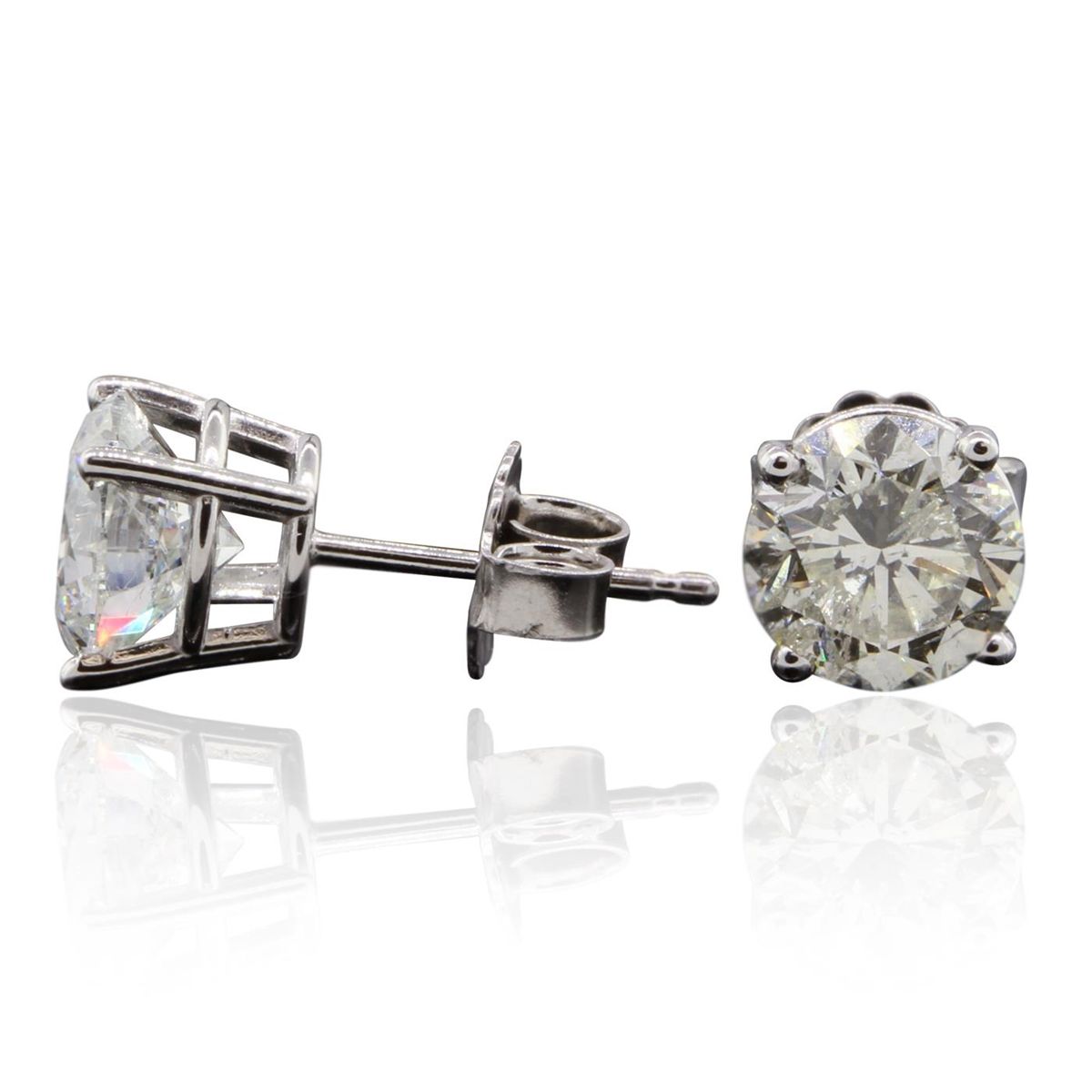 One pair electronically tested 14KT white gold Ladies die struck & assembled stud earrings with friction posts with a bright polish finish. Identified with markings of "14K". Condition is excellent. Containing: One prong set round brilliant cut diamond, measuring 6.30 - 6.30 x 3.90mm (depth est.) approximate weight of 0.99ct. Clarity of I-1, Color of K, Cut is Good. One prong set round brilliant cut diamond, measuring 6.30 - 6.30 x 3.90mm (depth est.) approximate weight of 0.99ct. Clarity of I-1, Color of K, Cut is Good. Comes with platinum posts. Total Weight of Diamonds 1.98ct. Total Weight of Earrings 1.30gm. GGL Appraised at $17,915.00.