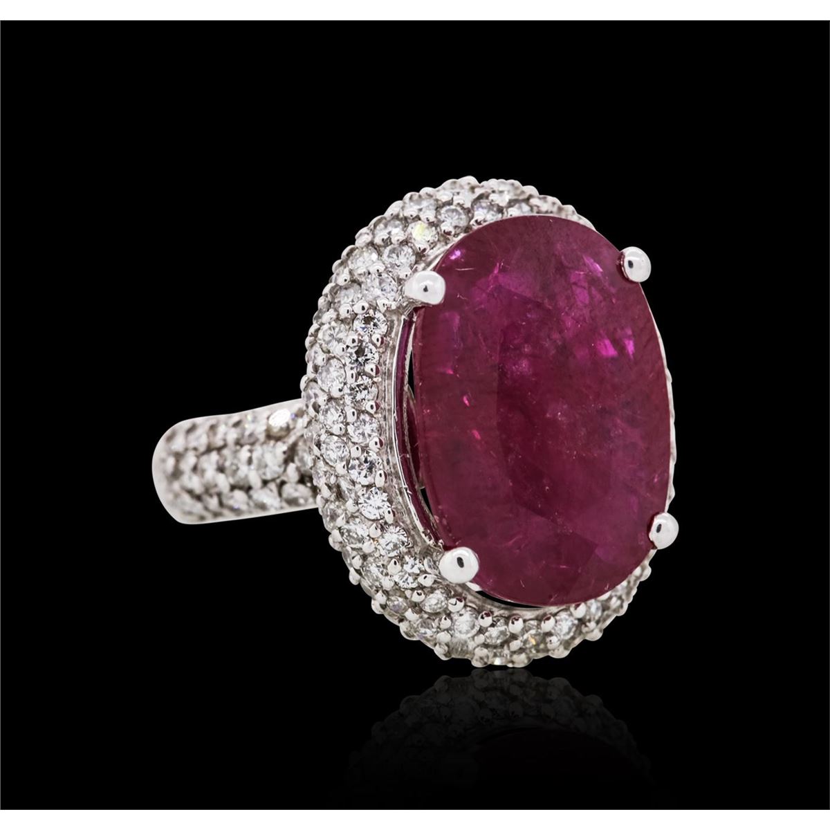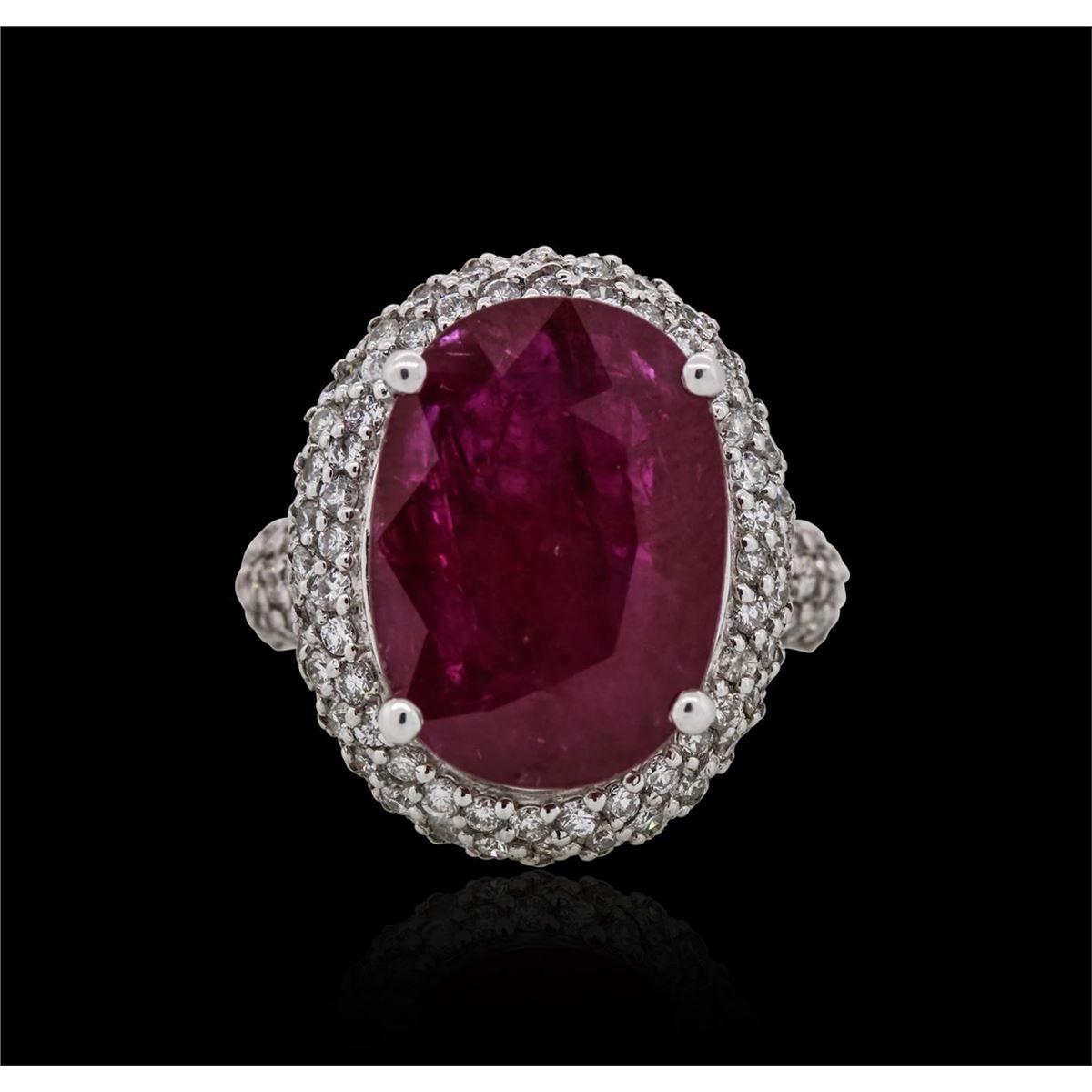One ring featuring: 14KT white gold weighing 10.00 grams containing one ruby center stone with a total weight of 10.32ct and round cut diamonds with a total weight of 2.40cts.