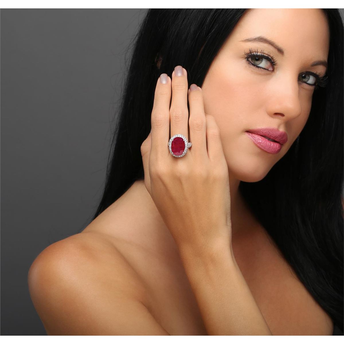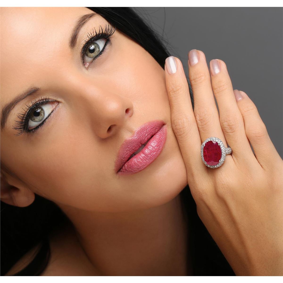 One ring featuring: 14KT white gold weighing 10.00 grams containing one ruby center stone with a total weight of 10.32ct and round cut diamonds with a total weight of 2.40cts.
