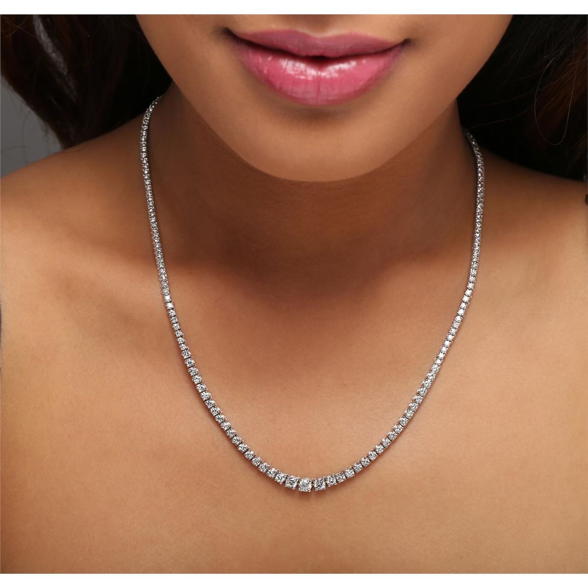 One electronically tested 14KT white gold ladies combination cast & assembled diamond necklace with a hidden box clasp with safety closer with a bright polish finish. Measurements: 17 in length. Identified with markings of 14K. Condition is new. Containing: One Hundred Seventy prong set round brilliant cut diamonds, measuring 4.00 - 1.80 x 1.74mm (depth est.) approximate total weight of 170 Stones = 10.86ct. Clarity: SI-2 to I-2. Color: H - I, Cut is Good. All diamonds are graded in the mounting, unless otherwise stated. Total Weight of Diamonds 10.86ct. Total Weight of Necklace 23.20 grams. GGL Appraised at $22,175.00.