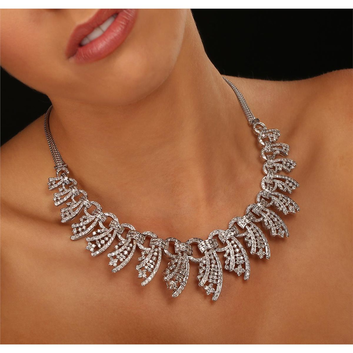 One electronically tested 14KT white gold Ladies combination cast & assembled choker necklace with a fish hook clasp with a bright polish finish. Measurements: 15.5" in length Condition is new. Containing: Five Hundred Eighty-Two prong set round brilliant cut diamonds, measuring 2.40 - 1.20 x 1.08mm (depth est.) approximate total weight of 582 Stones = 11.00ct. Clarity of SI-2 to I-2, Cut is Good. Total Weight of Diamonds 11.00ct. Total Weight of Necklace 90.10gm. GGL Appraised at $32,050.00.