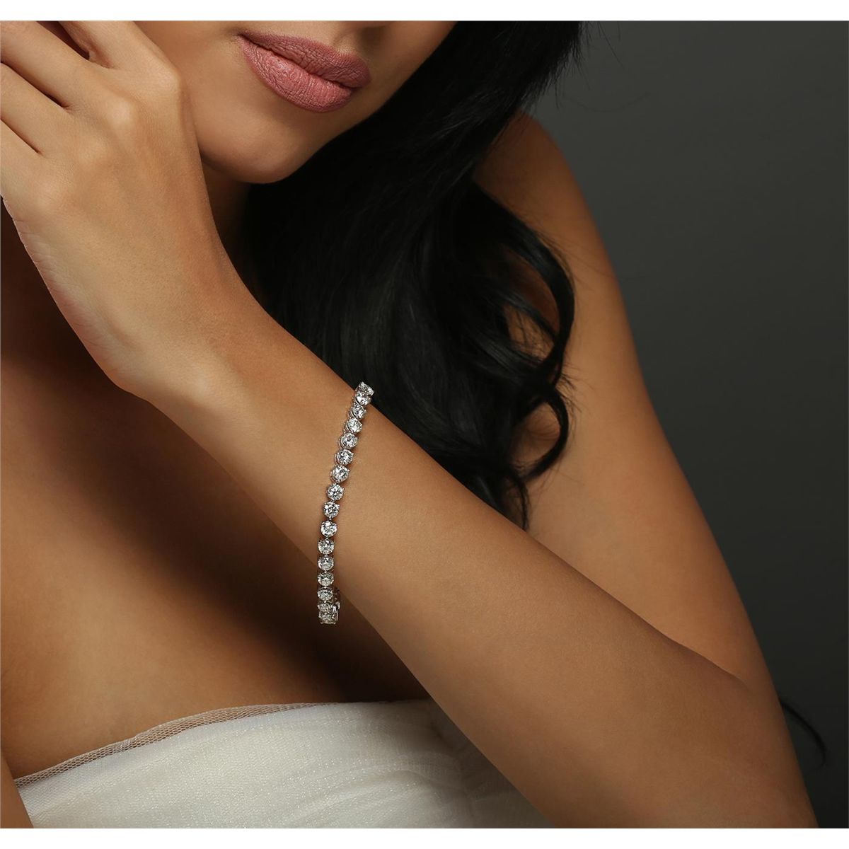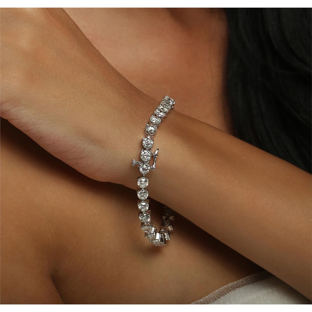 One electronically tested 14KT white gold ladies combination cast & assembled tennis bracelet with a hidden box clasp with a bright polish finish. Measurements: 7" in length. Identified with markings of "14K". Condition is new. Containing: Thirty-Two prong set round brilliant cut diamonds, measuring 4.60 - 4.60 x 2.76mm (depth est.) approximate total weight of 32 Stones = 11.40ct. Clarity: I-1 to I-3. Color: I - J, Cut is Good. All diamonds are graded in the mounting, unless otherwise stated. Total Weight of Diamonds 11.40ct. Total Weight of Bracelet 16.30 grams. GGL Appraised at $40,925.00.
