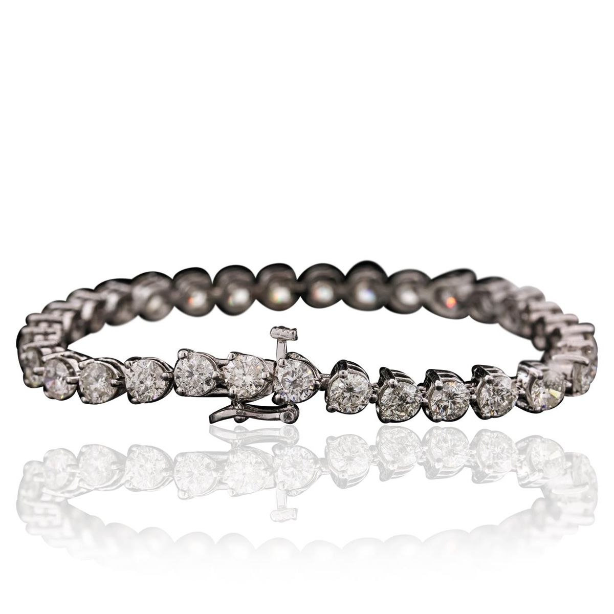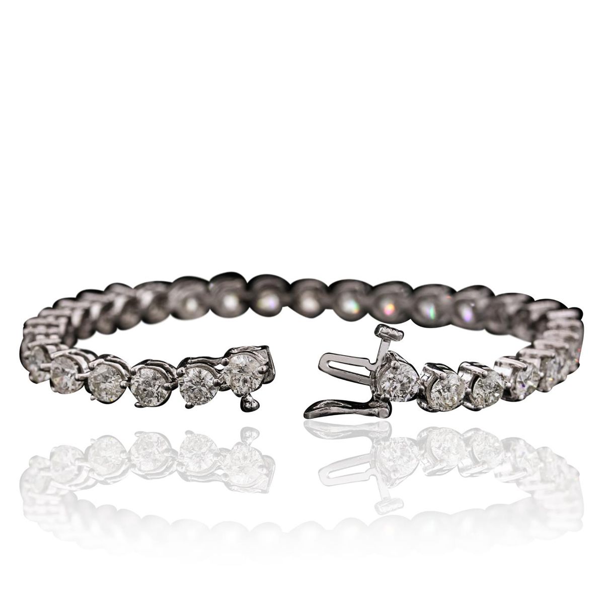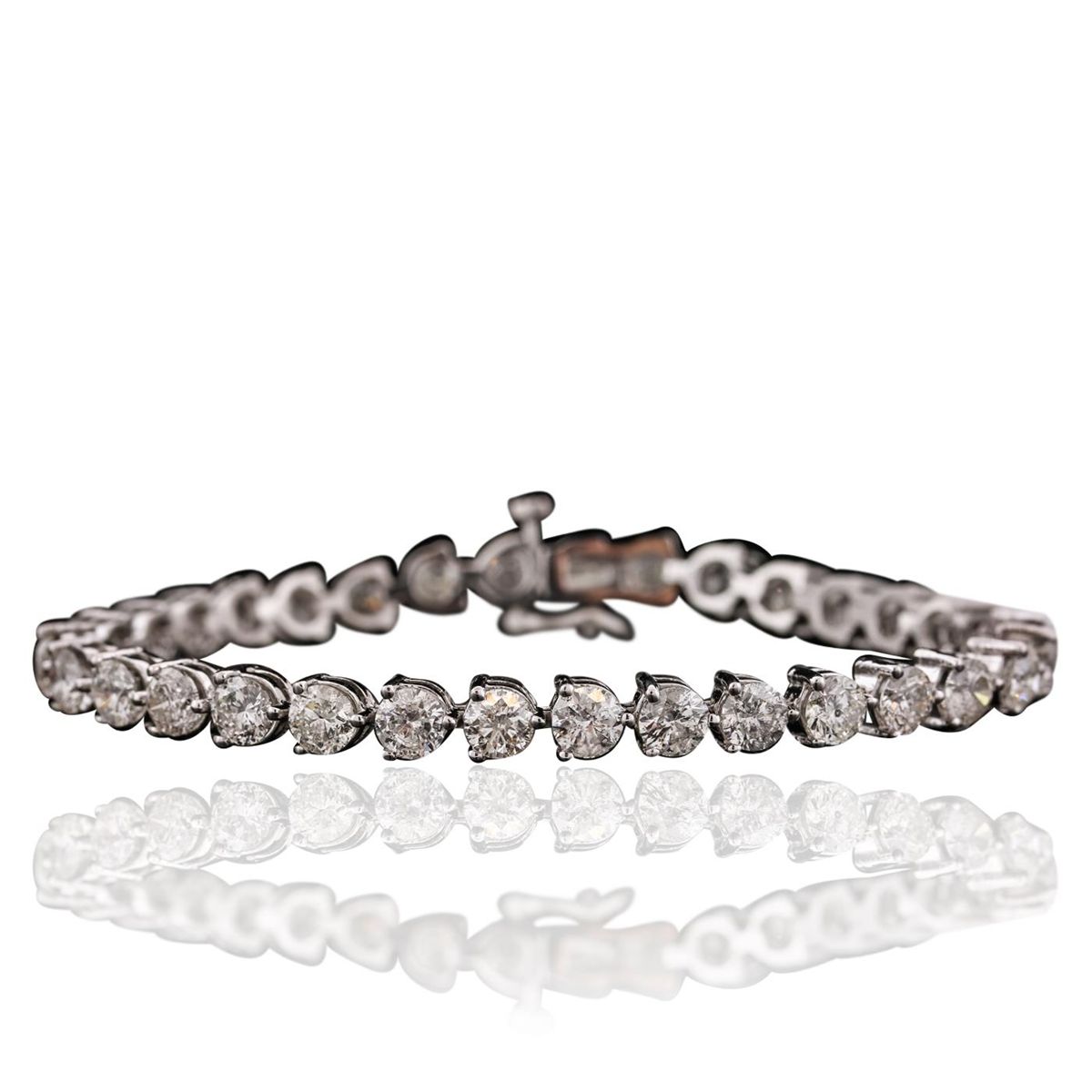 One electronically tested 14KT white gold ladies combination cast & assembled tennis bracelet with a hidden box clasp with a bright polish finish. Measurements: 7" in length. Identified with markings of "14K". Condition is new. Containing: Thirty-Two prong set round brilliant cut diamonds, measuring 4.60 - 4.60 x 2.76mm (depth est.) approximate total weight of 32 Stones = 11.40ct. Clarity: I-1 to I-3. Color: I - J, Cut is Good. All diamonds are graded in the mounting, unless otherwise stated. Total Weight of Diamonds 11.40ct. Total Weight of Bracelet 16.30 grams. GGL Appraised at $40,925.00.