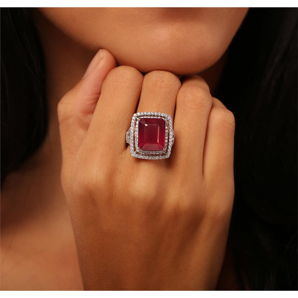 One electronically tested 14KT white gold Ladies combination cast & assembled fancy ring with a high polish finish. Condition is new. Identified with markings of "14K". Containing: One prong set oval emerald standard step cut natural ruby, measuring 12.00 x 14.00 x 10.35mm, approximate weight of 12.53ct., clarity is heavily included, type II, medium dark, moderately strong, strongly purplish red color, (GIA stpR 6/4), cut is good. Colored gemstones are presumed to have been subjected to commonly used color/clarity enhancement processes. One Hundred Fourteen bead set round brilliant cut diamonds, measuring 1.30 - 1.30 x 0.78mm (depth est.) approximate. Total Weight of 114 Stones = 1.26ct. Clarity: I-1 to I-2. Color: H - I, Cut is Good. Total Weight of Colored Stones 12.53ct. Total Weight of Diamonds 1.26ct. Total Weight of Ring 9.30 grams. GGL Appraised at $9,035.00.