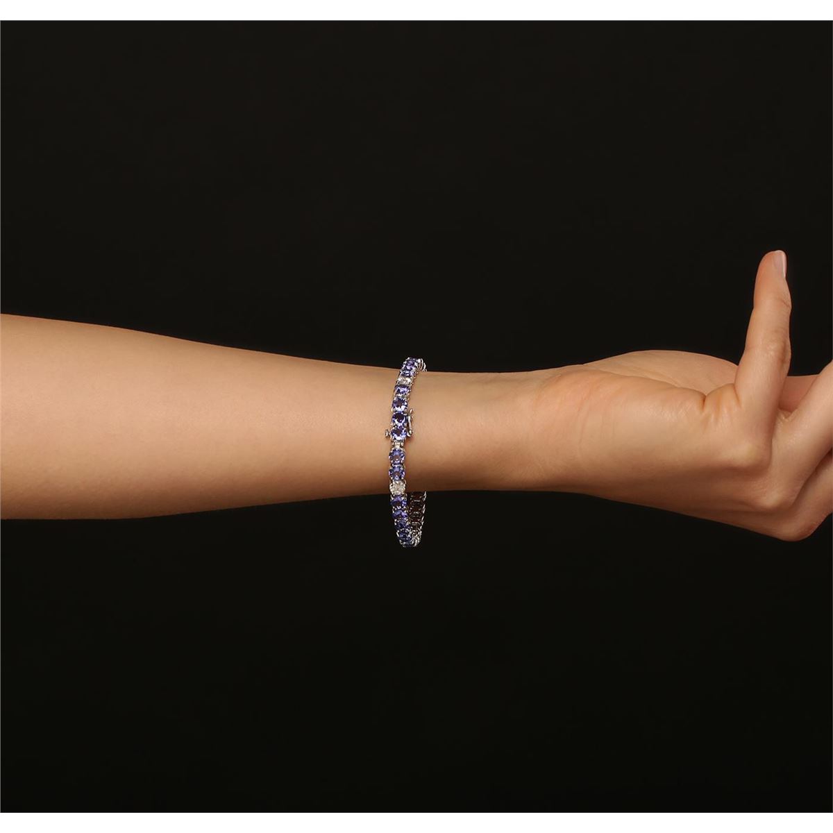 One electronically tested 14KT white gold Ladies combination cast & assembled bracelet with a safety clasp with a bright polish finish. Condition is new. Measurements: 7" in length. Identified with markings of "14K". Containing: Twenty-six prong set round modified brilliant cut natural tanzanites, measuring 4.90 - 4.90 x 3.19 mm, approximate. Total Weight of 13.26ct., clarity is eye clean, type I, medium, moderately strong, bluish violet color, (GIA bV 5/4), cut is good. Seven prong set round brilliant cut diamonds, measuring 4.90 - 4.90 x 2.94mm (depth est.) approximate. Total Weight of 7 Stones = 3.01ct. Clarity: I-2 to I-3. Color: J, Cut is Good. Colored gemstones are presumed to have been subjected to commonly used enhancement processes. All diamonds and colored gemstones are graded in the mounting, unless otherwise stated. Total Weight of Colored Stones 13.26ct. Total Weight of Diamonds 3.01ct. Total Weight of Bracelet 15.50 grams. GGL Appraised at $21,990.00.