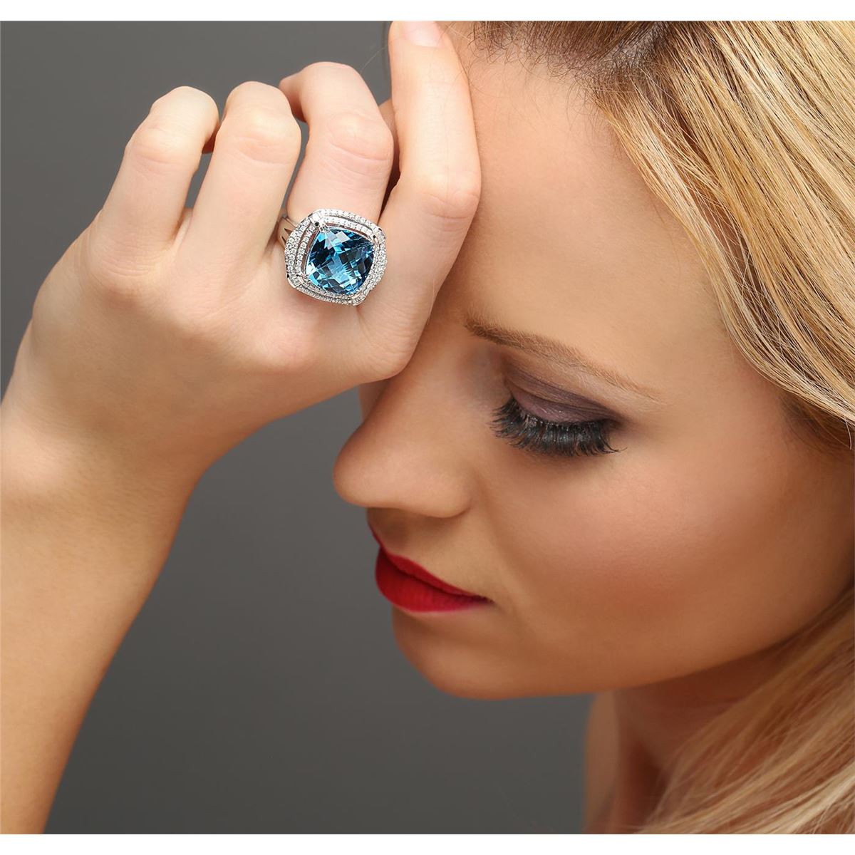 One ring featuring: 14KT white gold weighing 8.89 grams containing one blue topaz center stone with a total weight of 13.29ct and round diamonds with a total weight of 0.73ct.