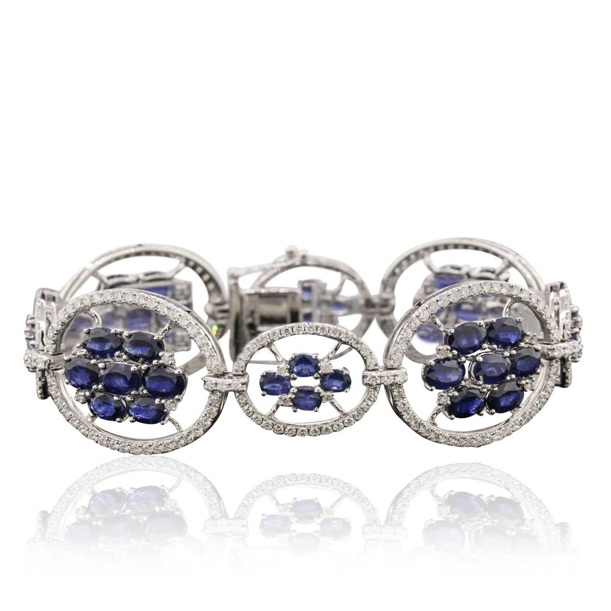 One bracelet featuring: 14KT white gold with a total weight of 21.63 grams, (44) sapphires with a total weight of 18.66ctw, and (328) diamonds with a total weight of 4.32ctw.
