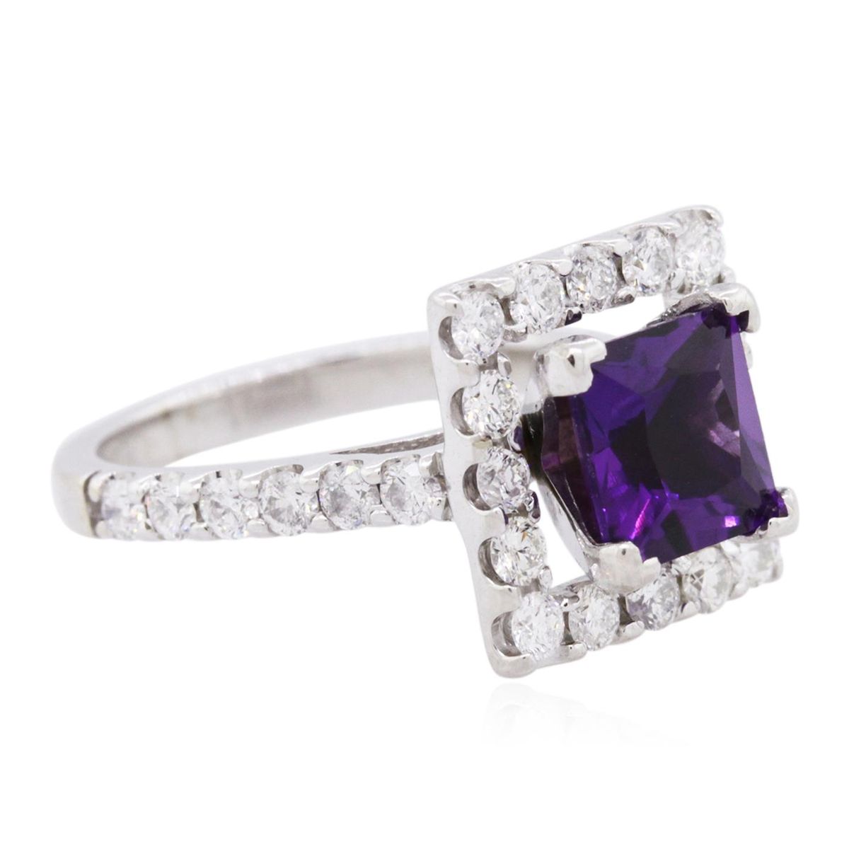 One ring featuring: 14KT white gold weighing 4.90 grams containing one amethyst center stone with a total weight of 2.00ct and round cut diamonds with a total weight of 1.00cts.
