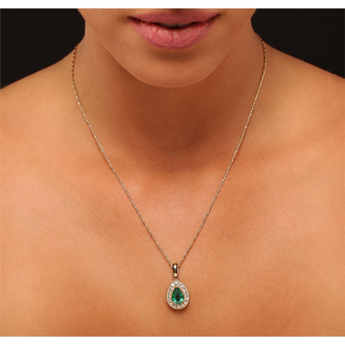 One electronically tested 14KT white gold Ladies pendant & chain 17.5" long, light fancy herringbone link with a lobster claw clasp with a bright polish finish. Condition is new. Identified with markings of "14K". Containing: One prong set pear modified brilliant cut natural emerald, measuring 11.00 x 8.00 x 4.20mm, approximate weight of 2.01ct., clarity is moderately included, type III, medium light, moderately strong, very slightly bluish green color, (GIA vslbG 4/4), cut is good. Colored gemstones are presumed to have been subjected to commonly used color/clarity enhancement processes. Seventeen prong set round brilliant cut diamonds, measuring 2.00 - 2.00 x 1.20mm (depth est.) approximate. Total Weight of 17 Stones = 0.50ct. Clarity: SI-2 to I-1. Color: H - I, Cut is Good. Total Weight of Colored Stones 2.01ct. Total Weight of Diamonds 0.50ct. Total Weight of Pendant & Chain 4.90 grams. GGL Appraised at $6,695.00.