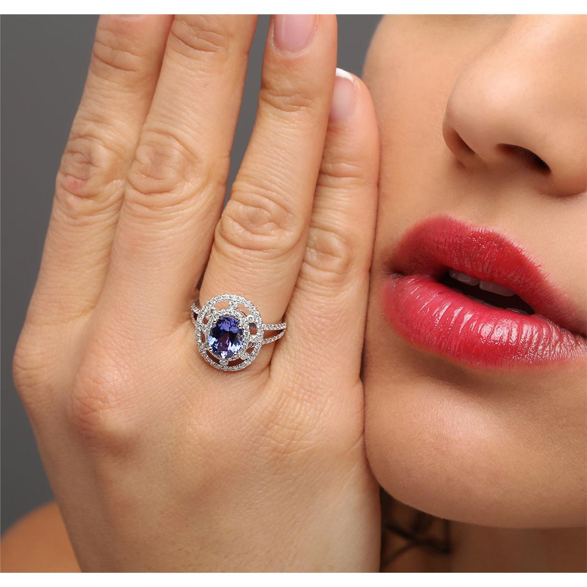 One ring featuring: 14KT white gold weighing 3.52 grams containing one tanzanite center stone with a total weight of 2.01ct and 92 round diamonds with a total weight of 0.75ct.