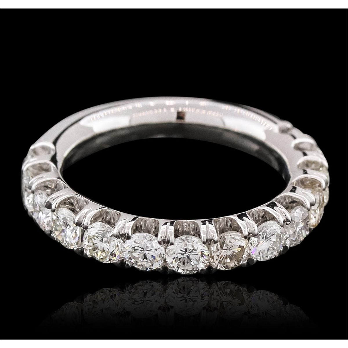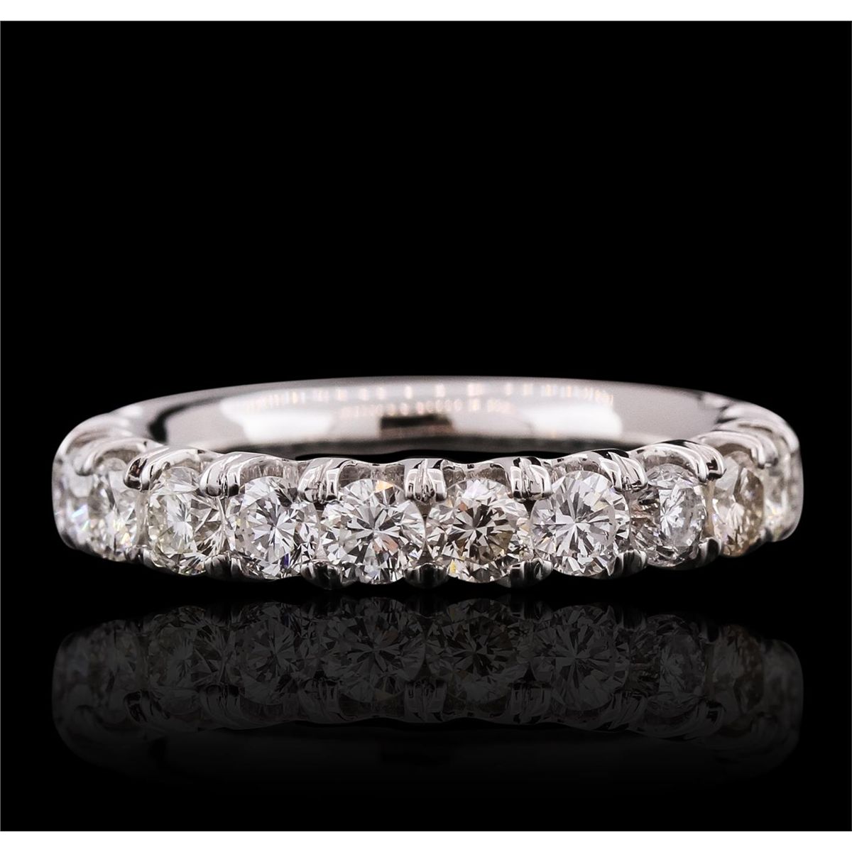 One electronically tested 14KT white gold ladies cast diamond wedding band with a bright polish finish. Identified with markings of "14K". Condition is new. Containing: Fourteen prong set round brilliant cut diamonds, measuring 3.40 - 3.40 x 2.04mm (depth est.) approximate total weight of 14 Stones = 2.01ct. Clarity: VS-2 to SI-2. Color: H - J, Cut is Good. All diamonds are graded in the mounting, unless otherwise stated. Total Weight of Diamonds 2.01ct. Total Weight of Wedding Band 6.20 grams. GGL Appraised at $8,490.00.