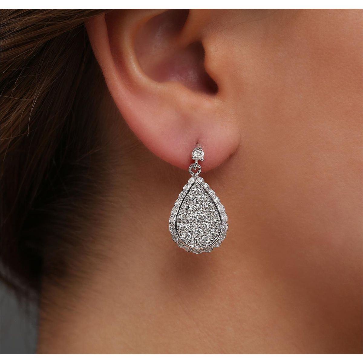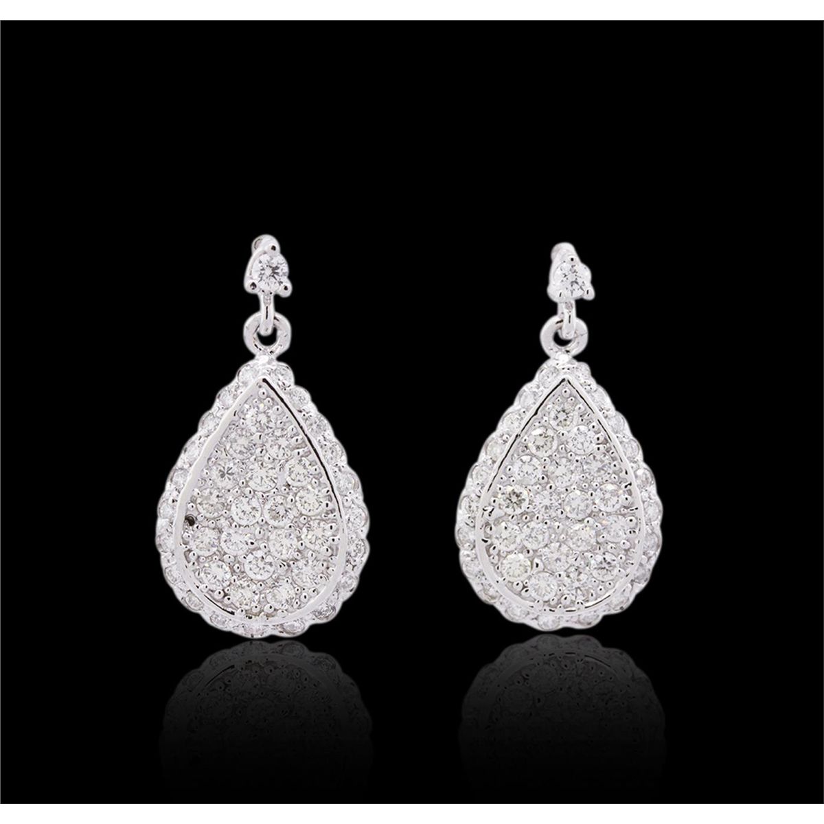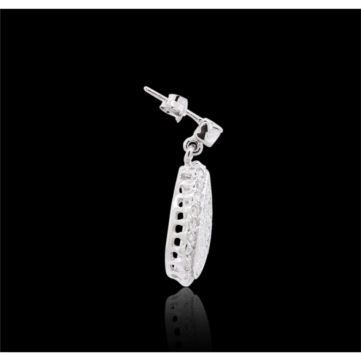 One pair electronically tested 14KT white gold ladies combination cast & assembled dangle diamond earrings with friction posts with a bright polish finish. Condition is new. Containing: Forty-Four prong set round brilliant cut diamonds, measuring 1.50 - 1.50 x 0.90mm (depth est.) approximate total weight of 44 Stones = 0.54ct. Clarity: SI-1 to I-1. Color: H - I, Cut is Good. Thirty-Eight prong set round brilliant cut diamonds, measuring 2.20 - 2.20 x 1.32mm (depth est.) approximate total weight of 38 Stones = 1.48ct. Clarity: SI-1 to I-1. Color: J - K, Cut is Good. All diamonds are graded in the mounting, unless otherwise stated. Total Weight of Diamonds 2.02ct. Total Weight of Earrings 8.40 grams. GGL Appraised at $6,740.00.