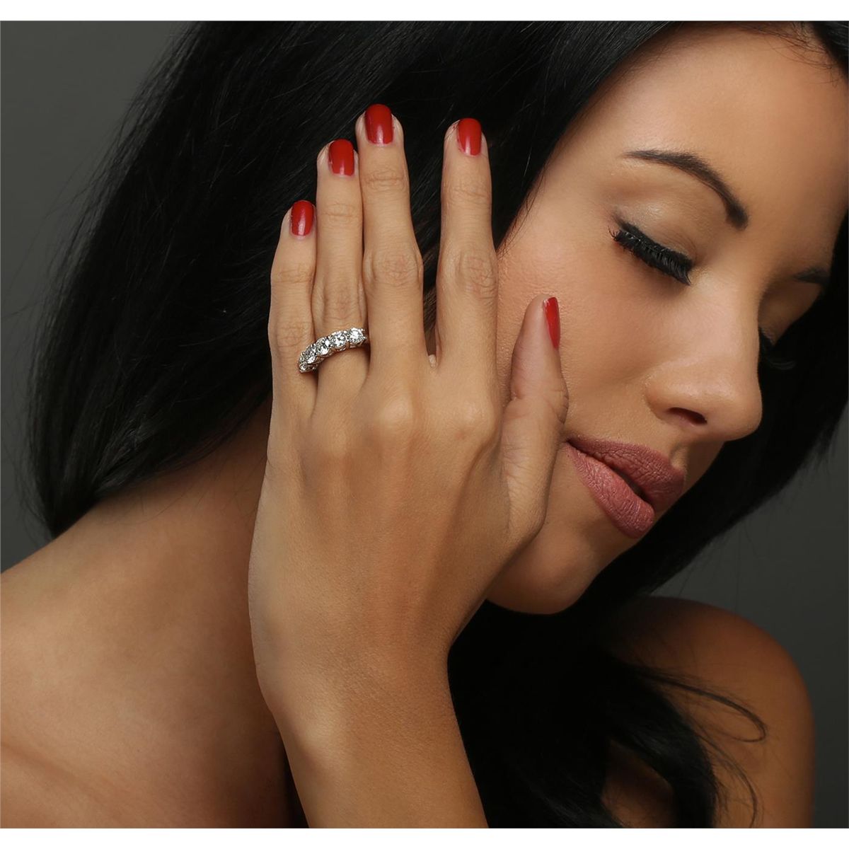 One electronically tested 14KT white gold ladies cast anniversary ring with a bright polish finish. Identified with markings of "14K". Condition is new. Containing: Five prong set round brilliant cut diamonds, measuring 4.80 - 4.80 x 2.88mm (depth est.) approximate total weight of 5 Stones = 2.02ct. Clarity: I-1 to I-2. Color: J, Cut is Good. All diamonds are graded in the mounting, unless otherwise stated. Total Weight of Diamonds 2.02ct. Total Weight of Ring 5.40 grams. GGL Appraised at $8,355.00.