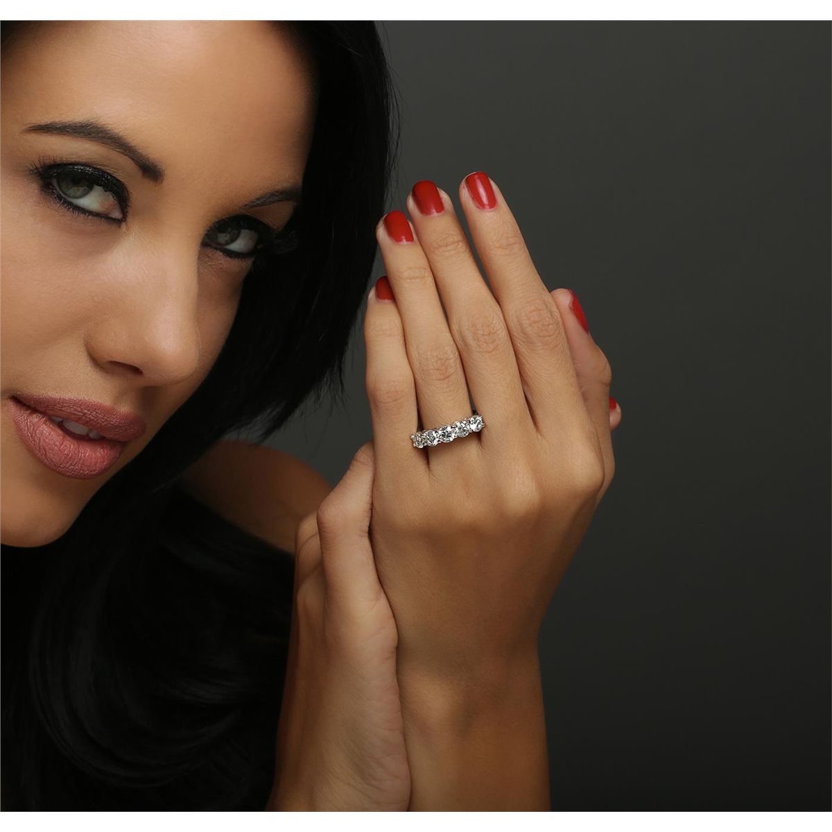 One electronically tested 14KT white gold ladies cast anniversary ring with a bright polish finish. Identified with markings of "14K". Condition is new. Containing: Five prong set round brilliant cut diamonds, measuring 4.80 - 4.80 x 2.88mm (depth est.) approximate total weight of 5 Stones = 2.02ct. Clarity: I-1 to I-2. Color: J, Cut is Good. All diamonds are graded in the mounting, unless otherwise stated. Total Weight of Diamonds 2.02ct. Total Weight of Ring 5.40 grams. GGL Appraised at $8,355.00.