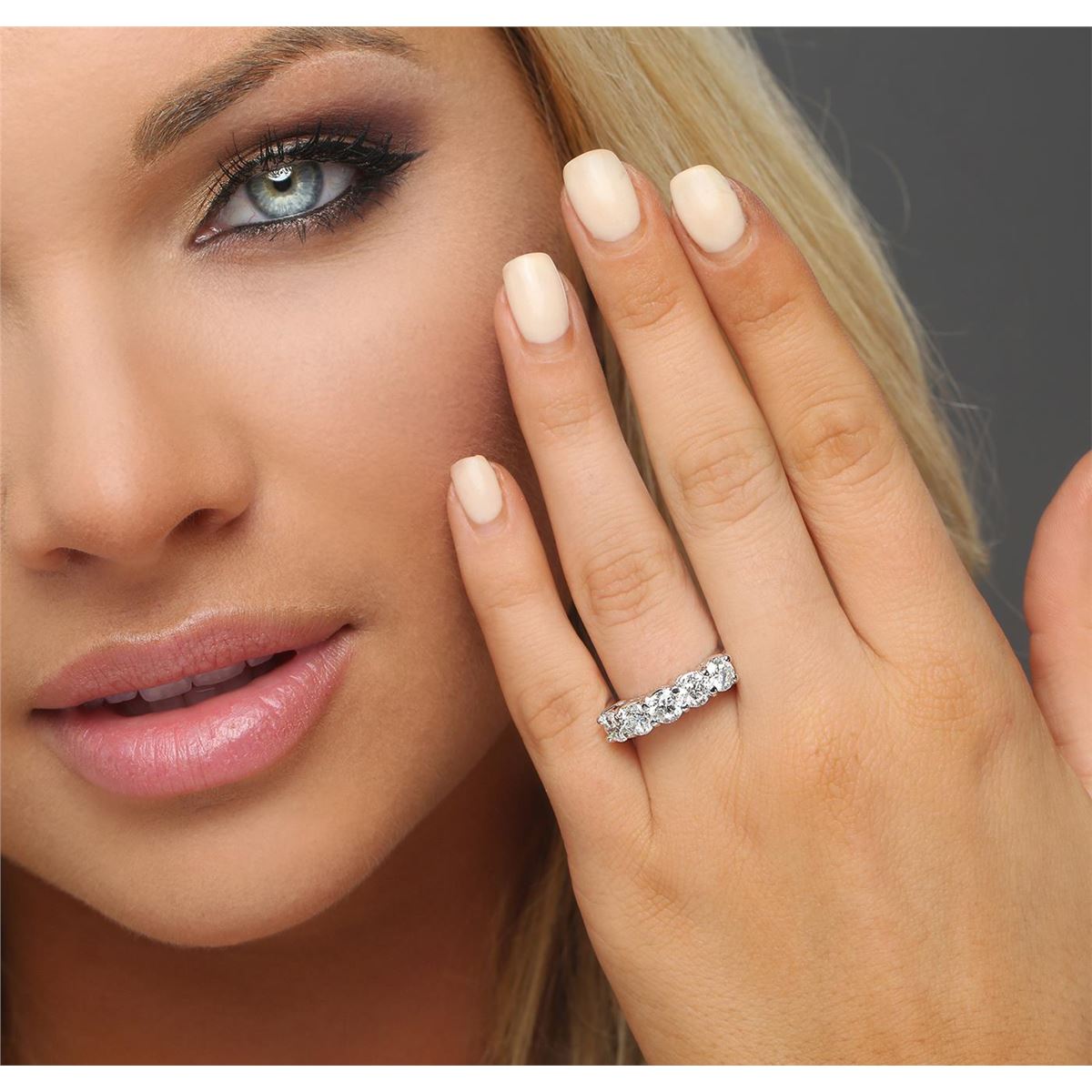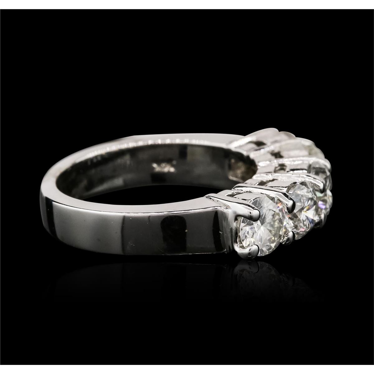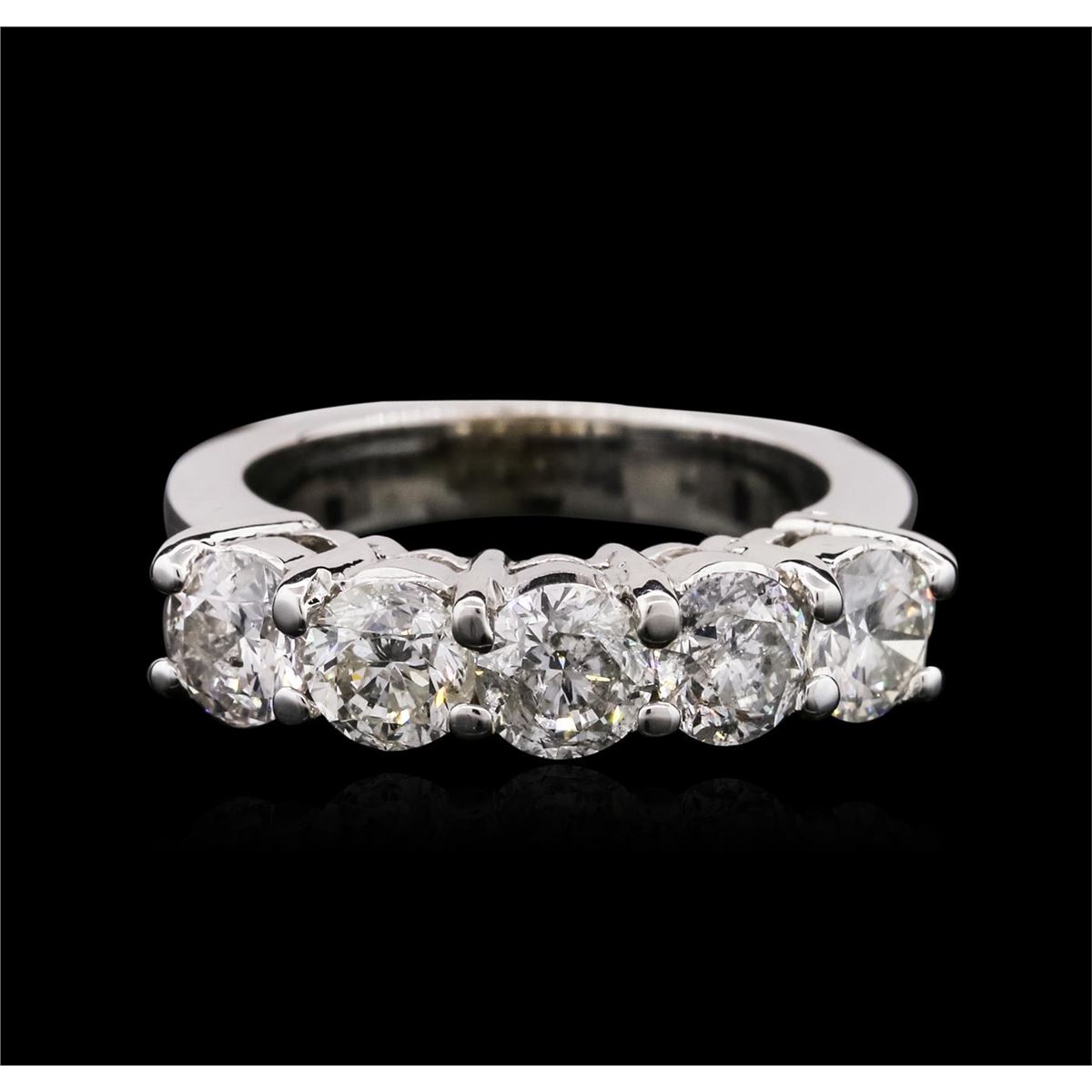 One electronically tested 14KT white gold ladies combination cast & assembled diamond ring with a bright polish finish. Identified with markings of "14K". Condition is new. Containing: Five prong set round brilliant cut diamonds, measuring 5.00 - 4.60 x 2.88mm (depth est.) approximate total weight of 5 Stones = 2.02ct. Clarity: SI-1 to I-1. Color: I - J, Cut is Good. All diamonds are graded in the mounting, unless otherwise stated. Total Weight of Diamonds 2.02ct. Total Weight of Ring 7.30 grams. GGL Appraised at $9,395.00.