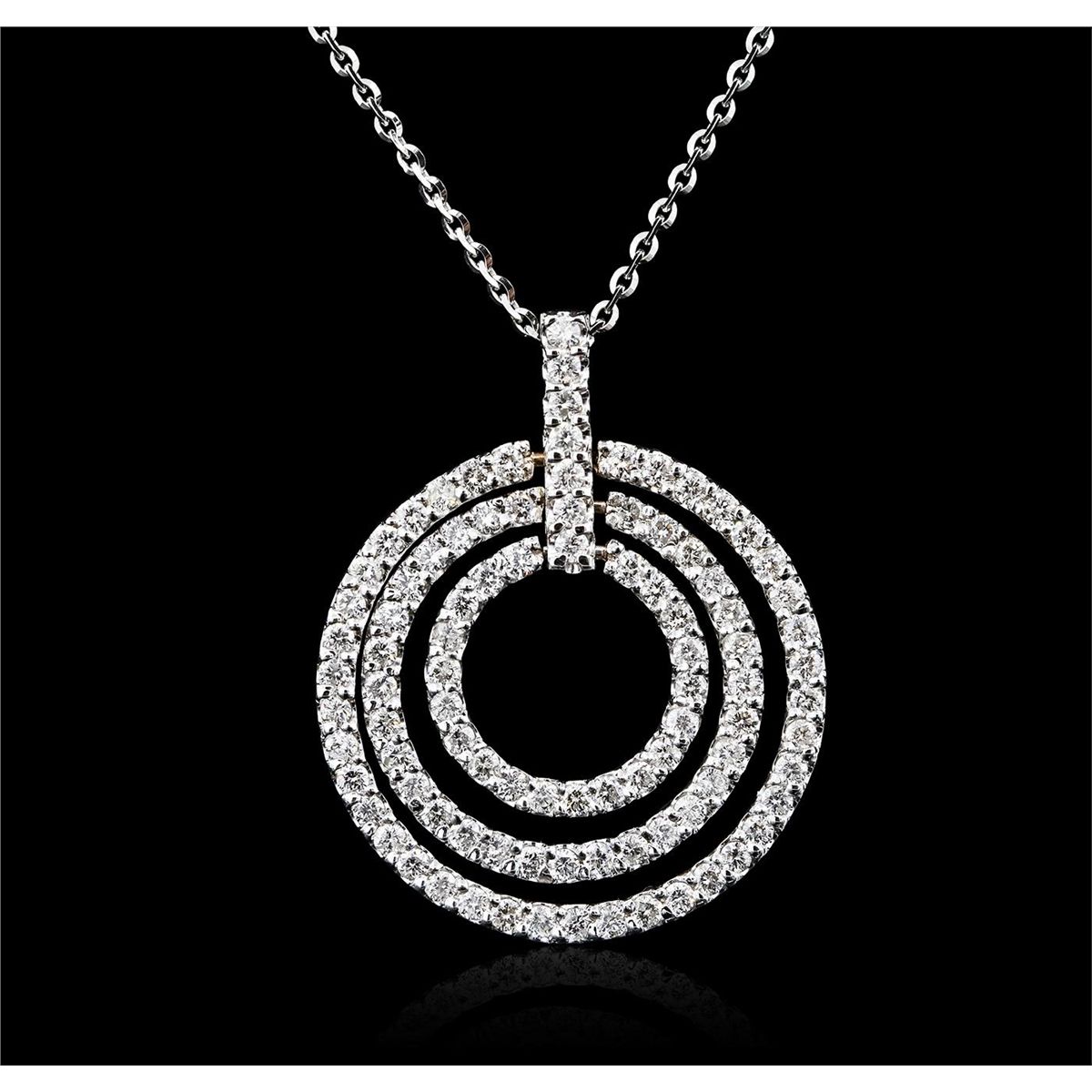 One electronically tested 14KT white gold ladies combination cast & assembled diamond pendant & chain 18.0" long, cable link with a lobster claw clasp with a bright polish finish. Identified with markings of "14K". Condition is new. Containing: Ninety-Six prong set round brilliant cut diamonds, measuring 1.80 - 1.80 x 1.08mm (depth est.) approximate total weight of 96 Stones = 2.05ct. Clarity: SI-2 to I-1. Color: J - K, Cut is Good. All diamonds are graded in the mounting, unless otherwise stated. Total Weight of Diamonds 2.05ct. Total Weight of Pendant & Chain 9.50 grams. GGL Appraised at $7,120.00.