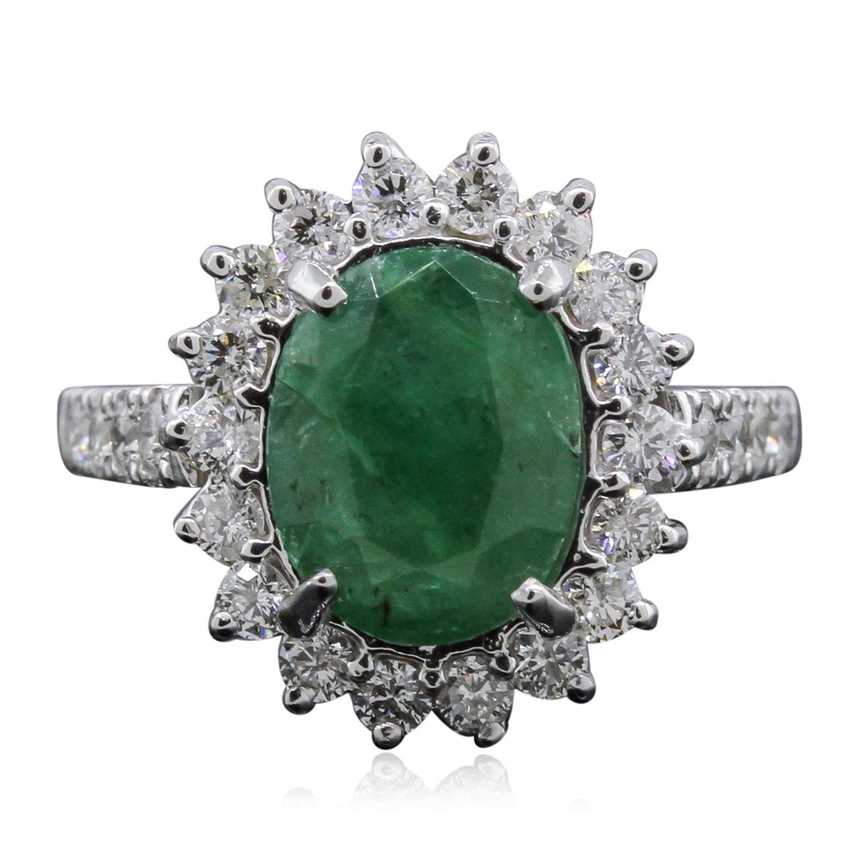 One electronically tested 14KT white gold Ladies combination cast & assembled fancy ring with a high polish finish. Condition is new. Identified with markings of "14K". Containing: One prong set oval modified brilliant cut natural emerald, measuring 10.30 x 8.50 x 4.30mm, approximate weight of 2.07ct., clarity is heavily included, type III, medium, moderately strong, green color, (GIA G 5/4), cut is good. Colored gemstones are presumed to have been subjected to commonly used and possible undetectable color/clarity enhancement processes. Twenty-Six prong set round brilliant cut diamonds, measuring 2.00 - 2.00 x 1.32mm (depth est.) approximate total weight of 26 Stones = 0.84ct. Clarity of SI-2 to I-1, Color of J - K, Cut is Good. Total Weight of Colored Stones 2.07ct. Total Weight of Diamonds 0.84ct. Total Weight of Ring 4.80 grams. GGL Appraised at $7,180.00.