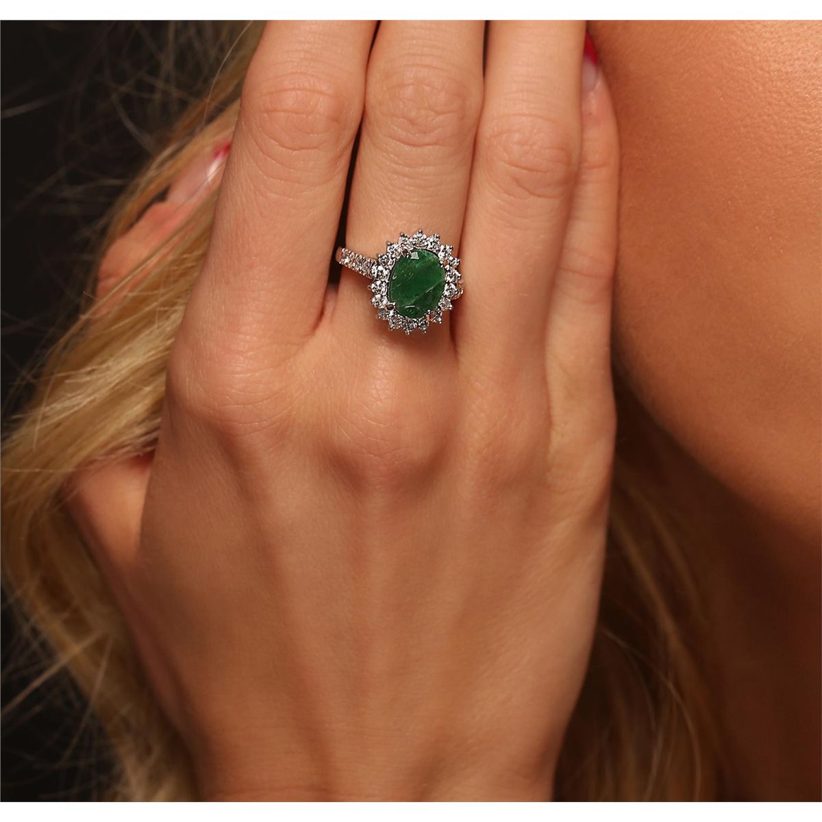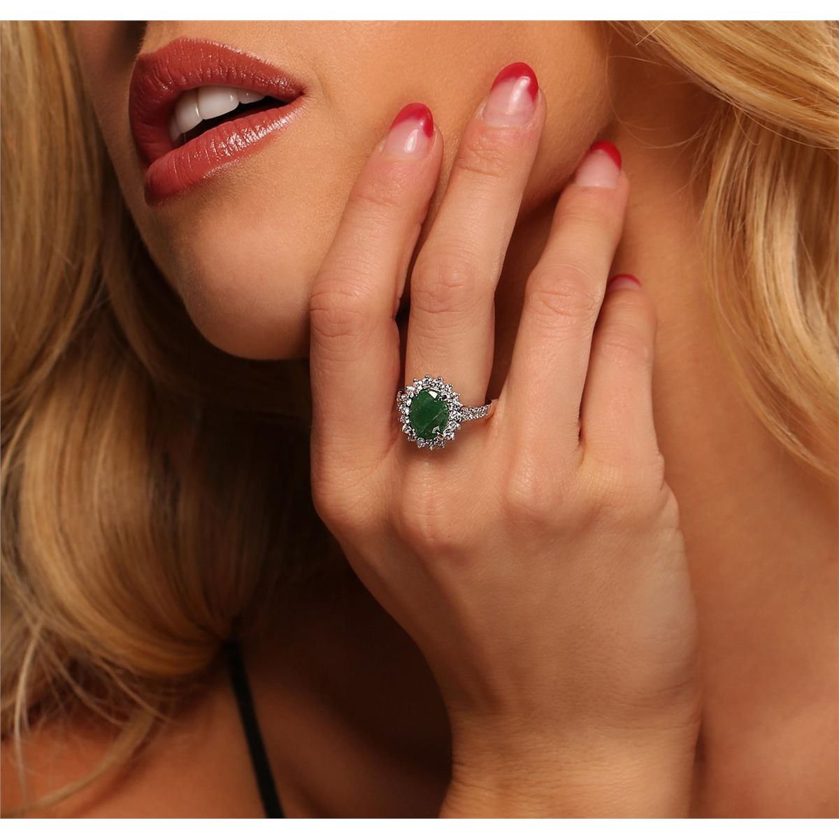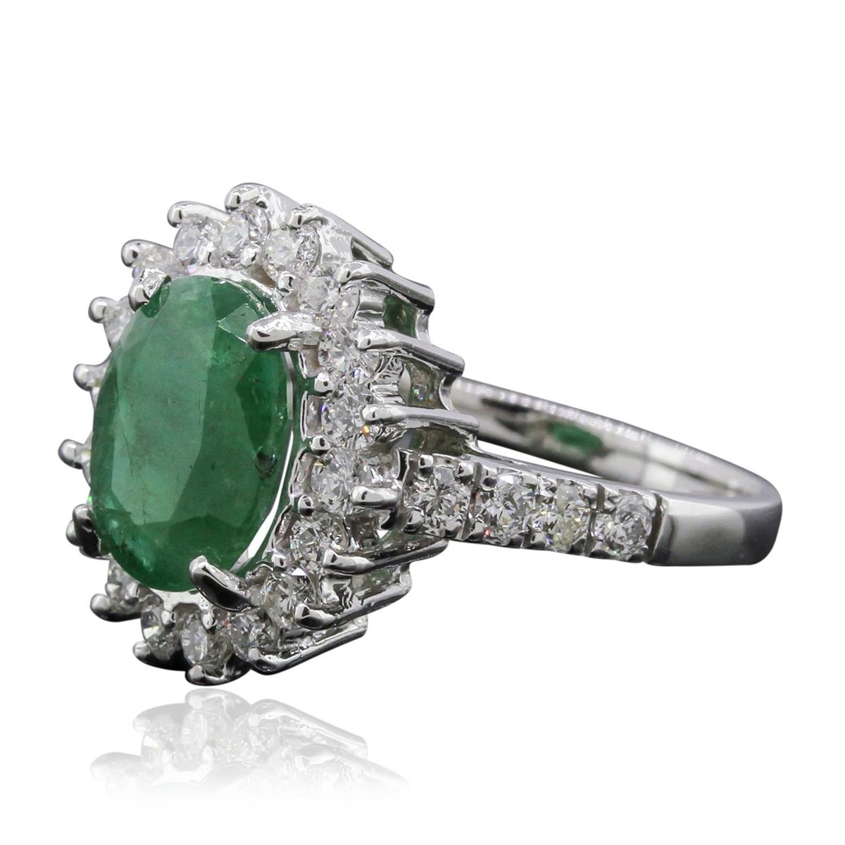 One electronically tested 14KT white gold Ladies combination cast & assembled fancy ring with a high polish finish. Condition is new. Identified with markings of "14K". Containing: One prong set oval modified brilliant cut natural emerald, measuring 10.30 x 8.50 x 4.30mm, approximate weight of 2.07ct., clarity is heavily included, type III, medium, moderately strong, green color, (GIA G 5/4), cut is good. Colored gemstones are presumed to have been subjected to commonly used and possible undetectable color/clarity enhancement processes. Twenty-Six prong set round brilliant cut diamonds, measuring 2.00 - 2.00 x 1.32mm (depth est.) approximate total weight of 26 Stones = 0.84ct. Clarity of SI-2 to I-1, Color of J - K, Cut is Good. Total Weight of Colored Stones 2.07ct. Total Weight of Diamonds 0.84ct. Total Weight of Ring 4.80 grams. GGL Appraised at $7,180.00.