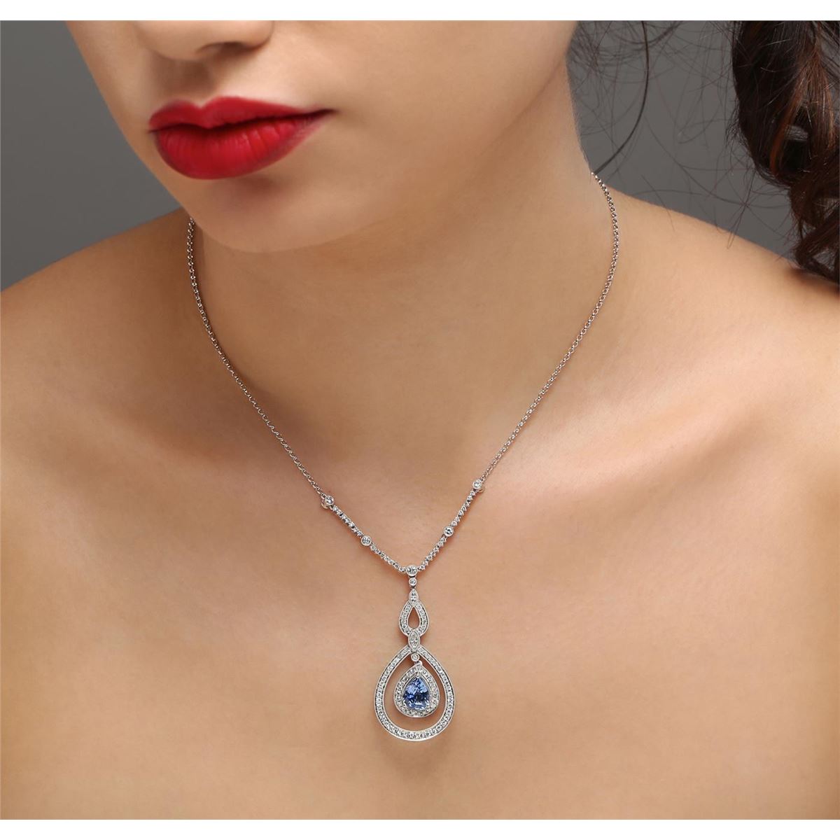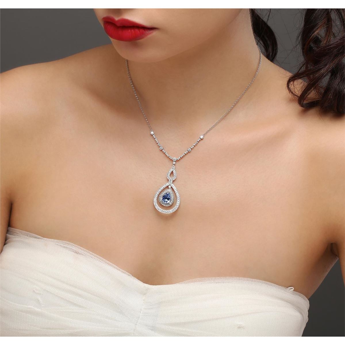 One necklace featuring: 14KT white gold weighing 9.88 grams containing one sapphire with a total weight of 2.09ct and 113 marquise cut/round diamonds with a total weight of 1.39ct.
