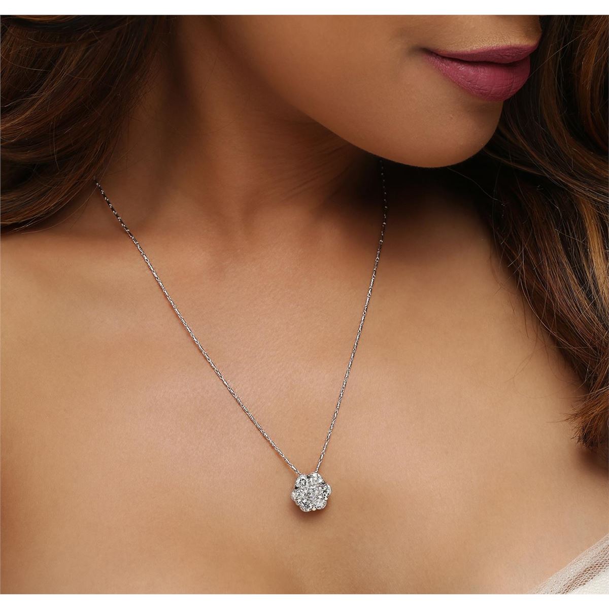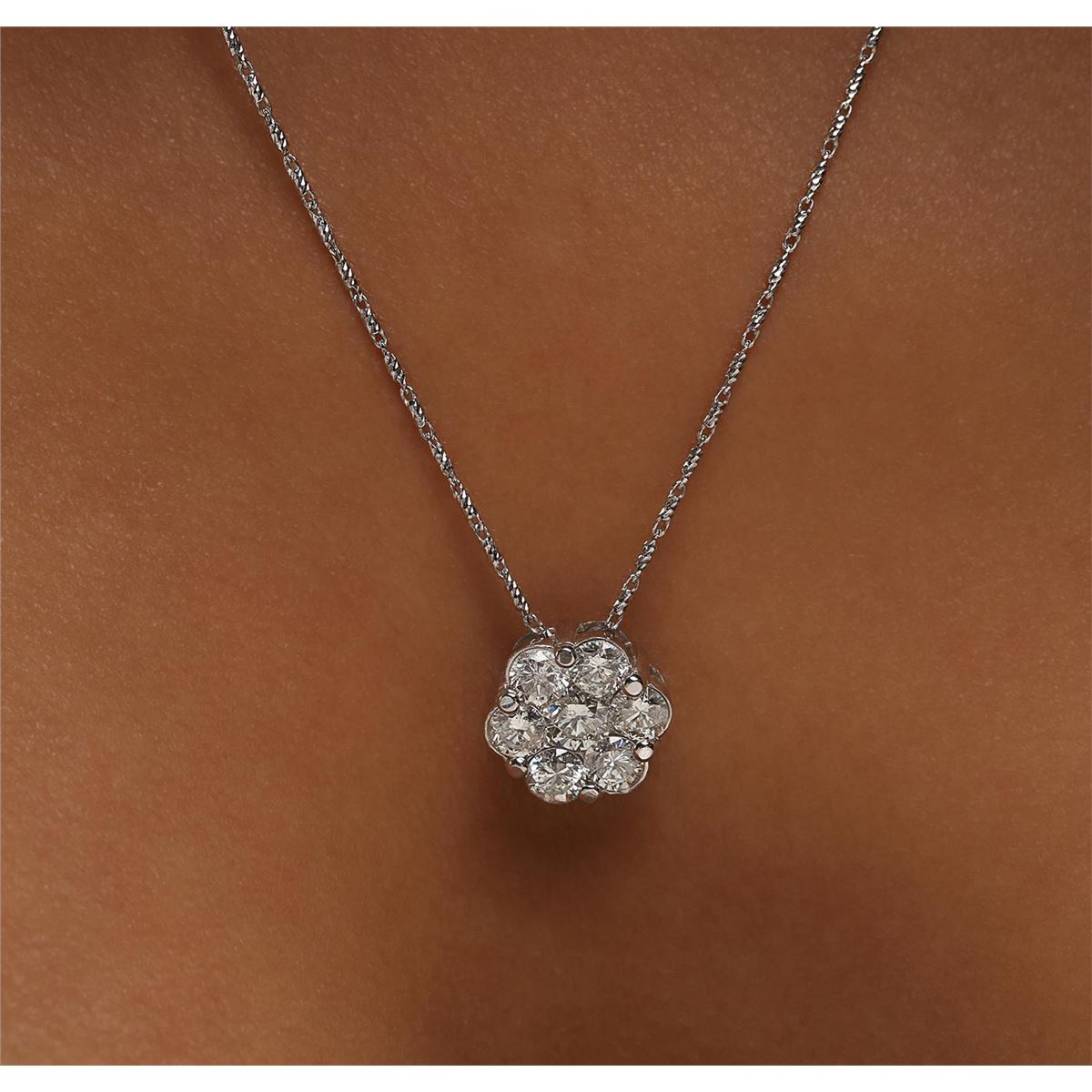 One electronically tested 14KT white gold ladies combination cast & assembled diamond pendant & chain 18.0" long, medium fancy link with a lobster claw clasp with a bright polish finish. Identified with markings of "14K". Condition is new. Containing: Seven prong set round brilliant cut diamonds, measuring 5.00 - 4.00 x 2.70mm (depth est.) approximate total weight of 7 Stones = 2.10ct. Clarity: SI-1 to SI-2. Color: I - J, Cut is Good. All diamonds are graded in the mounting, unless otherwise stated. Total Weight of Diamonds 2.10ct. Total Weight of Pendant & Chain 6.40 grams. GGL Appraised at $13,945.00.