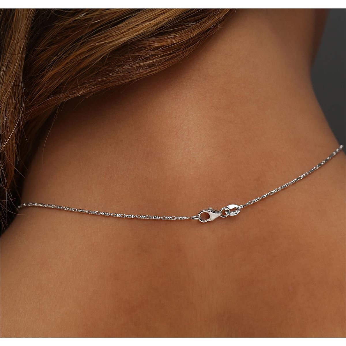 One electronically tested 14KT white gold ladies combination cast & assembled diamond pendant & chain 18.0" long, medium fancy link with a lobster claw clasp with a bright polish finish. Identified with markings of "14K". Condition is new. Containing: Seven prong set round brilliant cut diamonds, measuring 5.00 - 4.00 x 2.70mm (depth est.) approximate total weight of 7 Stones = 2.10ct. Clarity: SI-1 to SI-2. Color: I - J, Cut is Good. All diamonds are graded in the mounting, unless otherwise stated. Total Weight of Diamonds 2.10ct. Total Weight of Pendant & Chain 6.40 grams. GGL Appraised at $13,945.00.