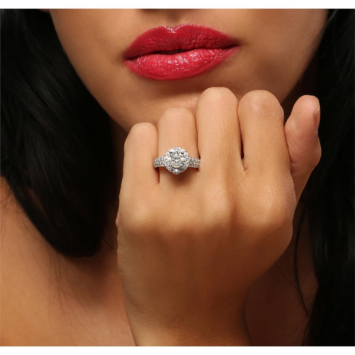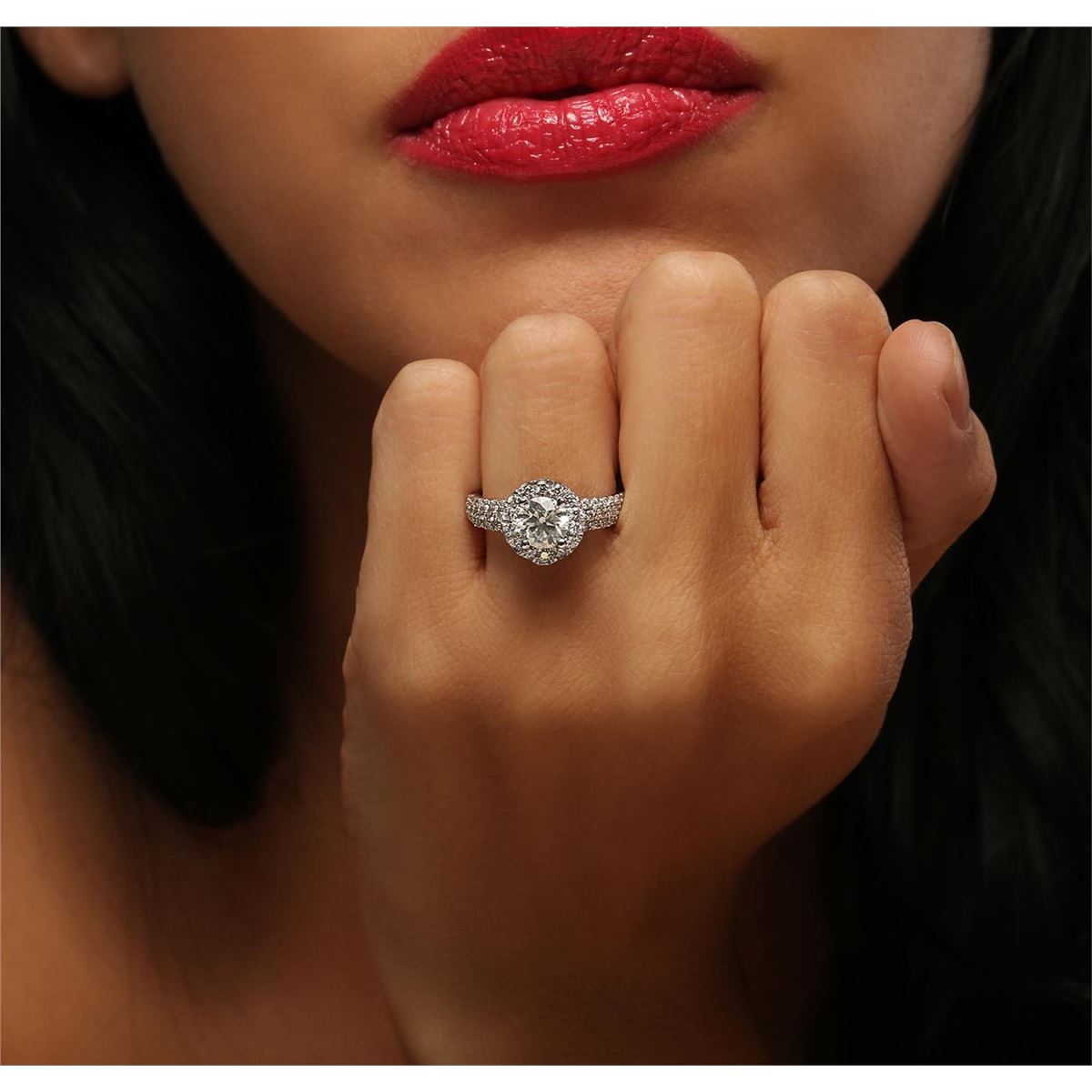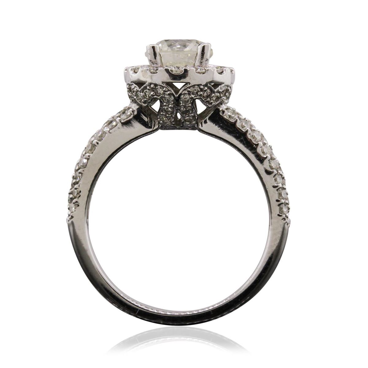 One electronically tested 14KT white gold Ladies combination cast & assembled engagement ring with a bright polish finish. Condition is new. Identified with markings of "14K". Containing: One prong set round brilliant cut diamond, measuring 6.55 - 6.49 x 4.24mm (depth est.) approximate weight of 1.18ct. Clarity: I-1. Color: H, Cut is Good. Ninety-Four prong set round brilliant cut diamonds, measuring 1.40 - 1.40 x 0.84mm (depth est.) approximate. Total Weight of 94 Stones = 0.98ct. Clarity: SI-1 to SI-3. Color: G - H, Cut is Good. EGL USA GEM ID# US 911348413D. All diamonds are graded in the mounting, unless otherwise stated. Total Weight of Diamonds 2.16ct. Total Weight of Engagement Ring 5.10 grams. GGL Appraised at $22,075.00.