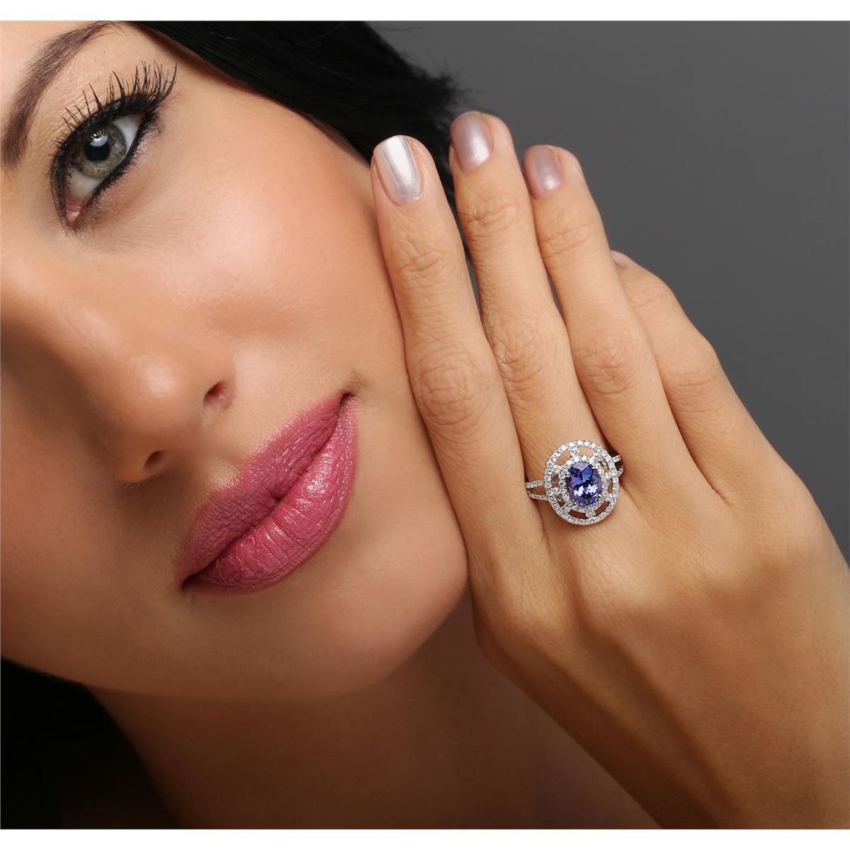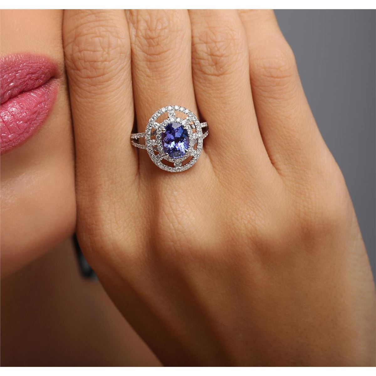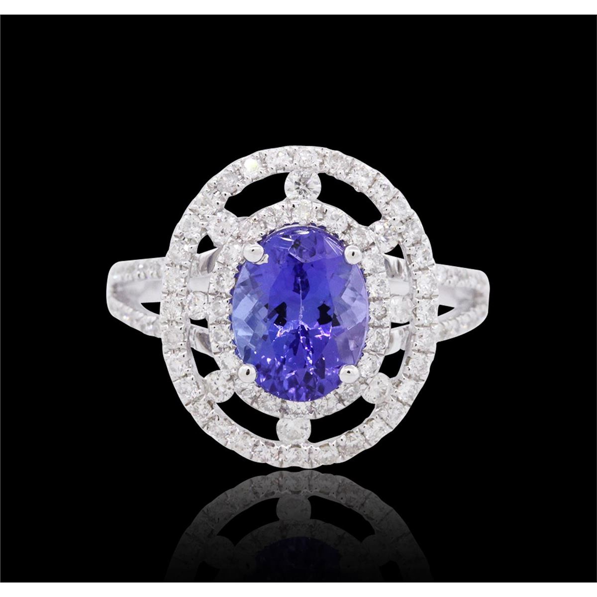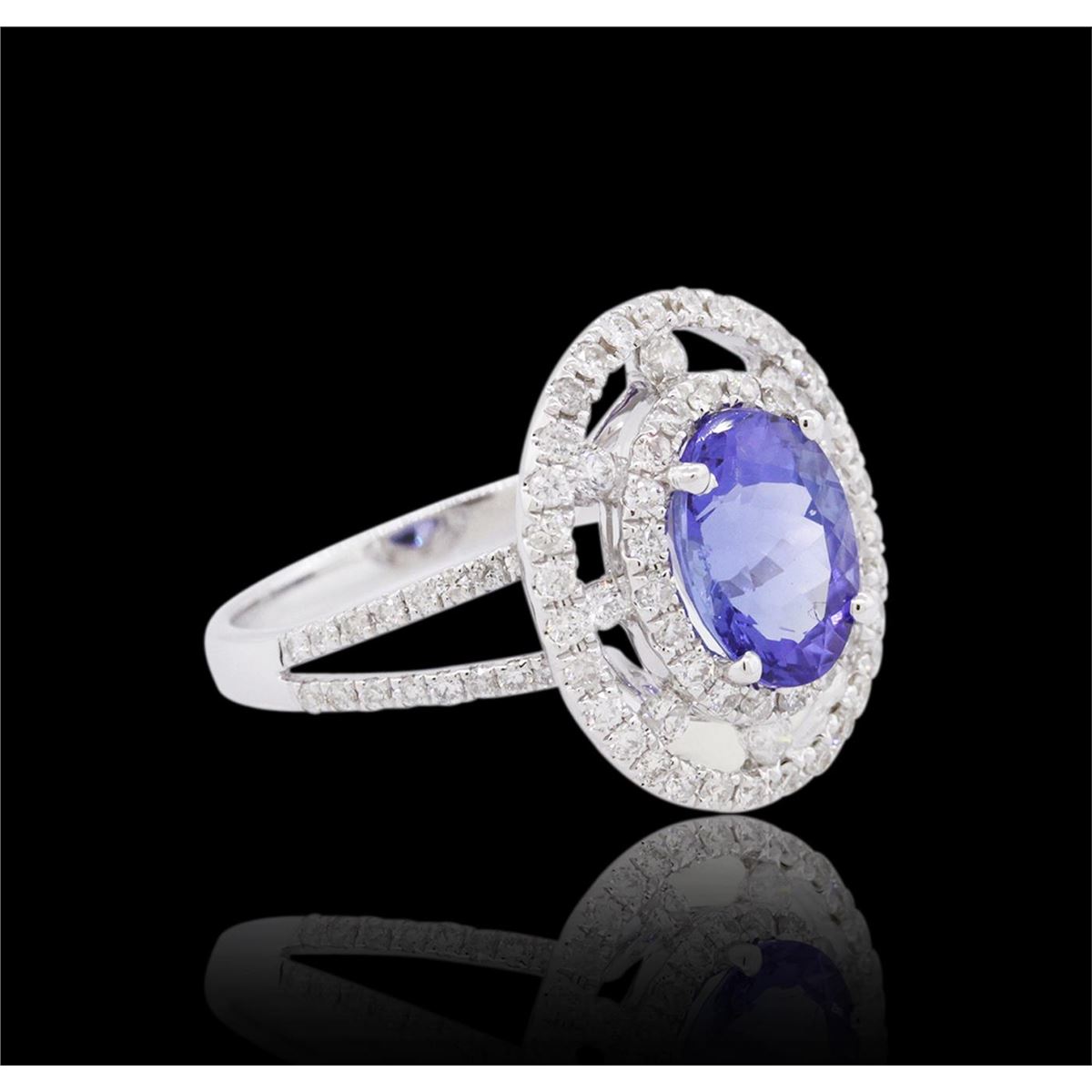 One ring featuring: 14KT white gold weighing 3.52 grams containing one tanzanite center stone with a total weight of 2.17ct and 92 round cut diamonds with a total weight of 0.75cts.