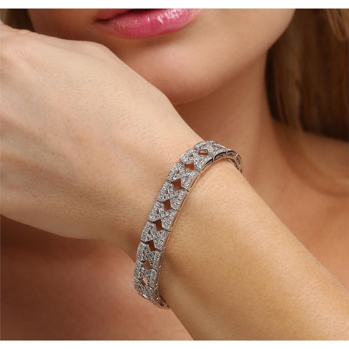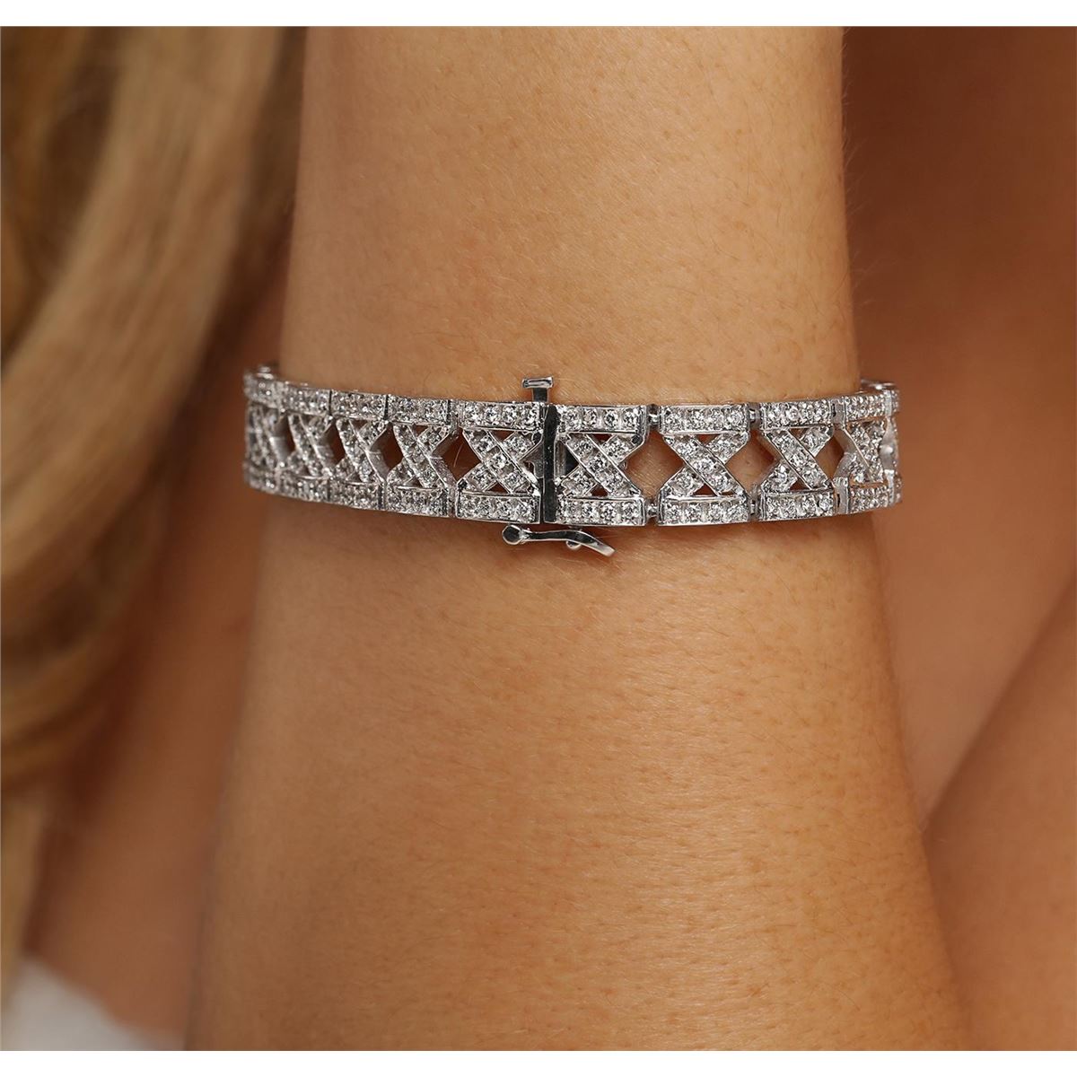 One electronically tested 14KT white gold ladies combination cast & assembled diamond bracelet with a hidden box clasp with safety closer with a bright polish finish. Measurements: 7" in length. Identified with markings of "14K". Condition is new. Containing: Two Hundred Seventy-Three prong set round brilliant cut diamonds, measuring 1.30 - 1.30 x 0.78mm (depth est.) approximate total Weight of 273 Stones = 2.18ct. Clarity: SI-2 to I-1. Color: I - J, Cut is Good. All diamonds are graded in the mounting, unless otherwise stated. Total Weight of Diamonds 2.18ct. Total Weight of Bracelet 28.70 grams. GGL Appraised at $12,045.00.