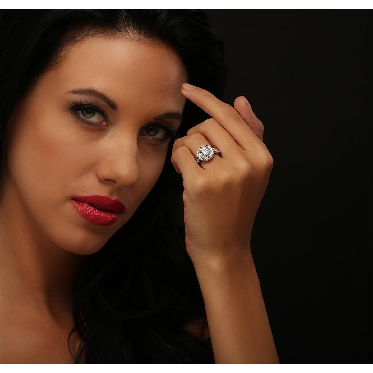 One electronically tested 14KT white gold Ladies combination cast & assembled engagement ring with a bright polish finish. Condition is new. Identified with markings of "14K". Containing: One prong set round brilliant cut diamond, measuring 6.74 - 6.72 x 4.00mm (depth est.) approximate weight of 1.13ct. Clarity: I-1. Color: F, Cut is Good. Twenty prong set round brilliant cut diamonds, measuring 2.40 - 2.40 x 1.44mm (depth est.) approximate. Total Weight of 20 Stones = 1.05ct. Clarity: SI-1 to SI-3. Color: E - F, Cut is Good. EGL USA GEM ID# US 911348421D. All diamonds are graded in the mounting, unless otherwise stated. Total Weight of Diamonds 2.18ct. Total Weight of Engagement Ring 6.30 grams. GGL Appraised at $24,395.00.