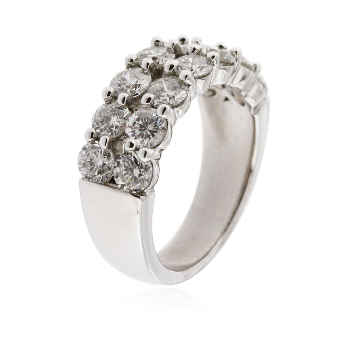One electronically tested 14KT white gold ladies cast diamond ring with a bright polish finish. Identified with markings of "14K". Condition is new. Containing: Fourteen prong set round brilliant cut diamonds, measuring 3.50 - 3.50 x 2.10mm (depth est.) approximate total weight of 14 Stones = 2.20ct. Clarity: SI-2. Color: I - J. All diamonds are graded in the mounting, unless otherwise stated. Total Weight of Diamonds 2.20ct. Total Weight of Ring 7.70 grams. GGL Appraised at $9,095.00.