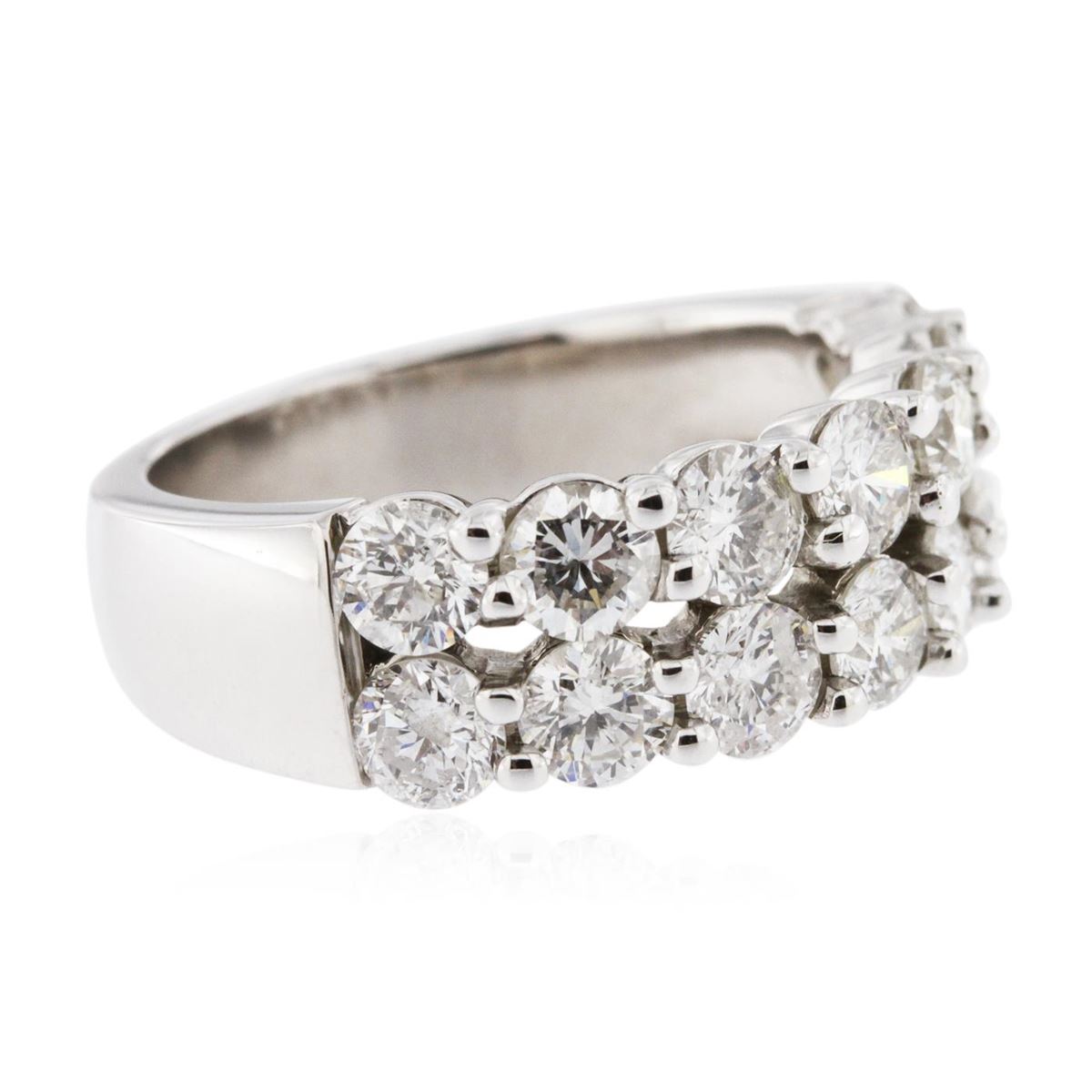 One electronically tested 14KT white gold ladies cast diamond ring with a bright polish finish. Identified with markings of "14K". Condition is new. Containing: Fourteen prong set round brilliant cut diamonds, measuring 3.50 - 3.50 x 2.10mm (depth est.) approximate total weight of 14 Stones = 2.20ct. Clarity: SI-2. Color: I - J. All diamonds are graded in the mounting, unless otherwise stated. Total Weight of Diamonds 2.20ct. Total Weight of Ring 7.70 grams. GGL Appraised at $9,095.00.