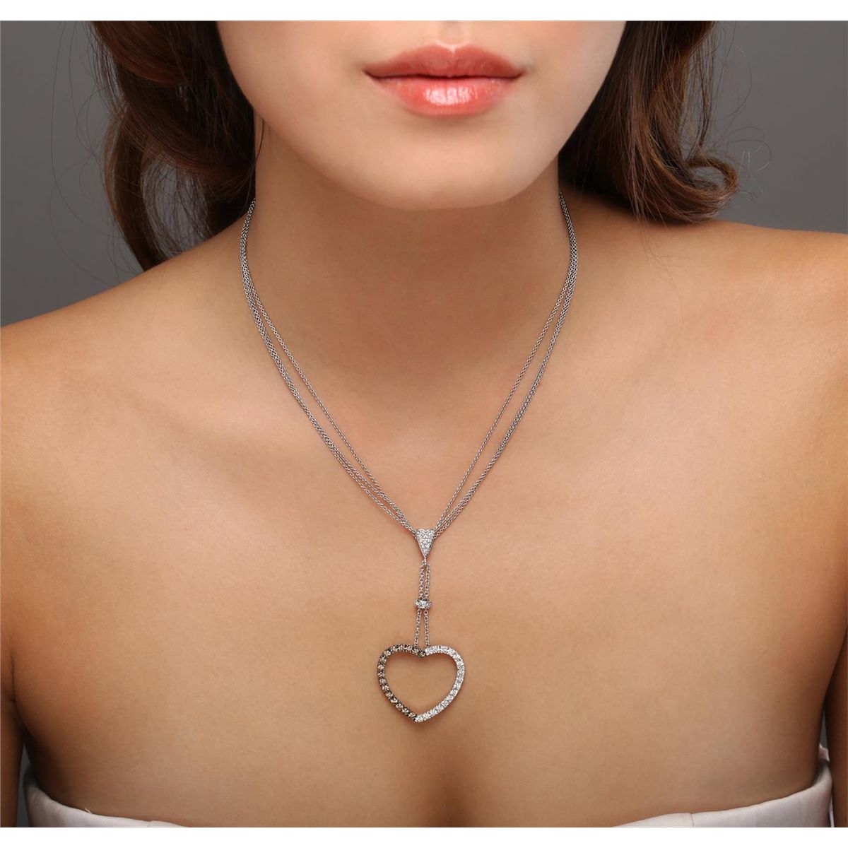 One heart pendant with chain featuring: 14KT white gold weighing 9.40 grams with chain containing 28 white brilliant cut and 16 brown diamonds with a total weight of 2.20cts.